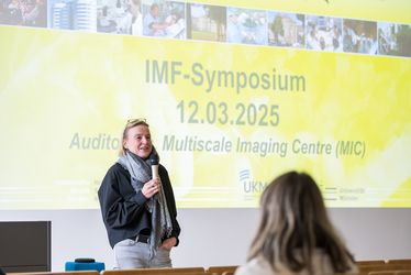 Das interne Förderprogramm „Innovative Medizinische Forschung“ (IMF) der Medizinischen Fakultät kann bereits auf eine 29-jährige Geschichte zurückblicken. Auch in diesem Jahr lud der Vorstand der IMF-Kommission nun zum dritten Mal zum „IMF-Projects-in-Progress-Symposium“ ein. Das Auditorium und das Foyer des Multiscale Imaging Centre (MIC) bildeten den perfekten Rahmen für die Veranstaltung, die darauf abzielt, die Vernetzung junger Wissenschaftlerinnen und Wissenschaftler am Medizinstandort zu fördern sowie Synergien zwischen den vom IMF finanzierten Forschungsprojekten aufzubauen.