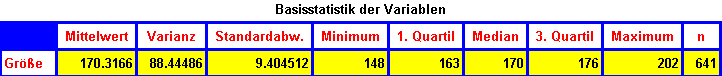 Abbildung 7.4: Basisstatistik des Merkmals "Größe"
