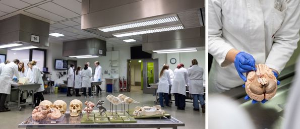 Im Kursus der makroskopischen Anatomie wird den Studierenden die Verantwortung für eine Kör perspende übertragen. Die Supervision erfolgt durch Professoren, Assistentinnen und Assistenten sowie durch Präparatorinnen und Präparatoren. Grundlage der mündlichen und schriftlichen Prüfungen sind die im Kurs angefertigten Präparate. Ergänzende Gruppenarbeiten werden durch die Bereitstellung von Modellen und Demonstrationspräparaten sowie durch die umfangreiche Medienausstattung unterstützt.