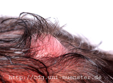 Symptome der Erkrankung: Bereits unmittelbar nach der Geburt zeigt sich meist eine muskuläre Hypotonie, eine auffällige Facies, eine occipitale Encephalocele und Fehlbildungen der Augen. Gelegentlich treten bereits jetzt Störungen der Atmung auf. Die initiale Diagnostik sollte aus einer Sonographie des Gehirns, einer Inspektion der Augen und der Bestimmung der Creatinkinase im Serum bestehen. Die erweiterte Diagnostik besteht aus einer cerebralen Bildgebung mittels CT/MRT und einer ophthalmologischen Untersuchung.
