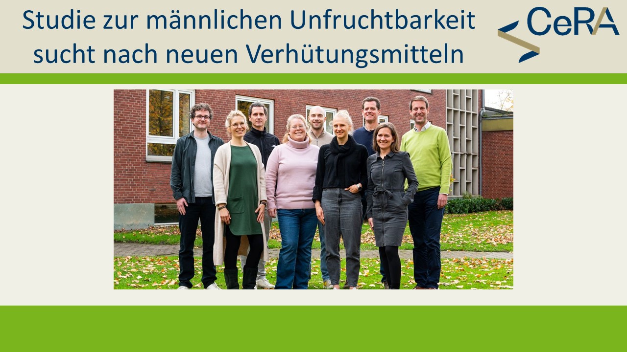 Das Centrum für Reproduktionsmedizin und Andrologie (CeRA) ist spezialisiert auf die Erforschung der Reproduktionsfunktion und die klinische Behandlung von Männern. Unsere Forschung sowie die translationalen und klinischen Studien am CeRA helfen, neue Erkenntnisse zu den Fortpflanzungsfunktionen zu generieren und Patienteninnen und Patienten eine optimale, auf den aktuellsten Forschungsergebnissen basierende Therapie zu gewähren. Forschende sowie Ärztinnen und Ärzte vereinen bei uns ihr multidisziplinäres Fachwissen aus den Gebieten der Reproduktionsmedizin und -biologie, Physik, Chemie, Physiologie, Gynäkologie, Andrologie, Humangenetik, und Stammzellforschung untersuchen gemeinsam in multidisziplinären Projektteams die grundlegenden Prinzipien der Befruchtung.