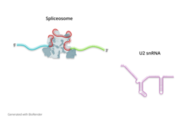 Das Spleißosom ist ein großer Komplex, der aus vielen Proteinen und kleinen RNA-Molekülen, den sog. „small nuclear RNA“ (snRNA), besteht. Dieser große Komplex katalysiert die Entfernung von Introns, die Verknüpfung von Exons und somit die Bilder von reifer mRNA. Pathogene Varianten in Genen, die snRNA kodieren, wurden kürzlich mittels Genomsequenzierung als eine wichtige und bislang nicht erfasste Ursache für neurologische Entwicklungsstörungen identifiziert. Pathogene Varianten in dem snRNA-kodierenden Gen RNU4-2 ist zurzeit ein der häufigsten Ursachen für monogene syndromale Entwicklungsstörungen und/oder intellektuelle Beeinträchtigungen.