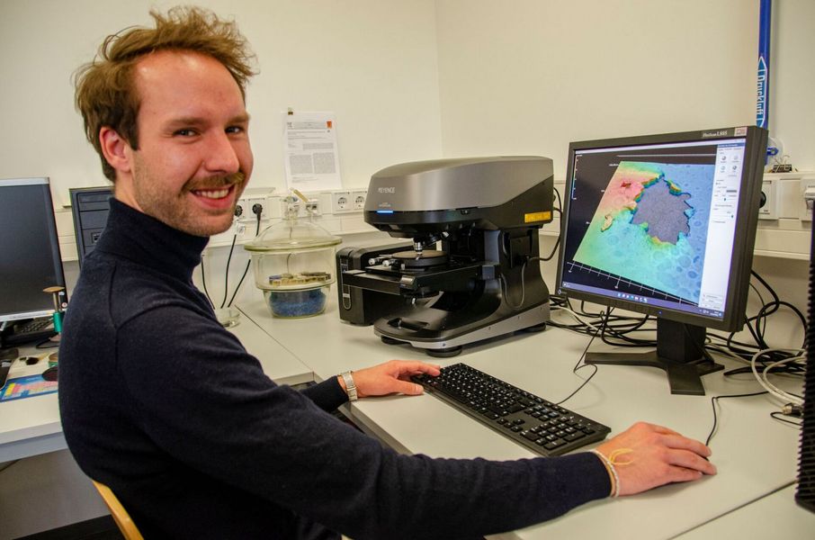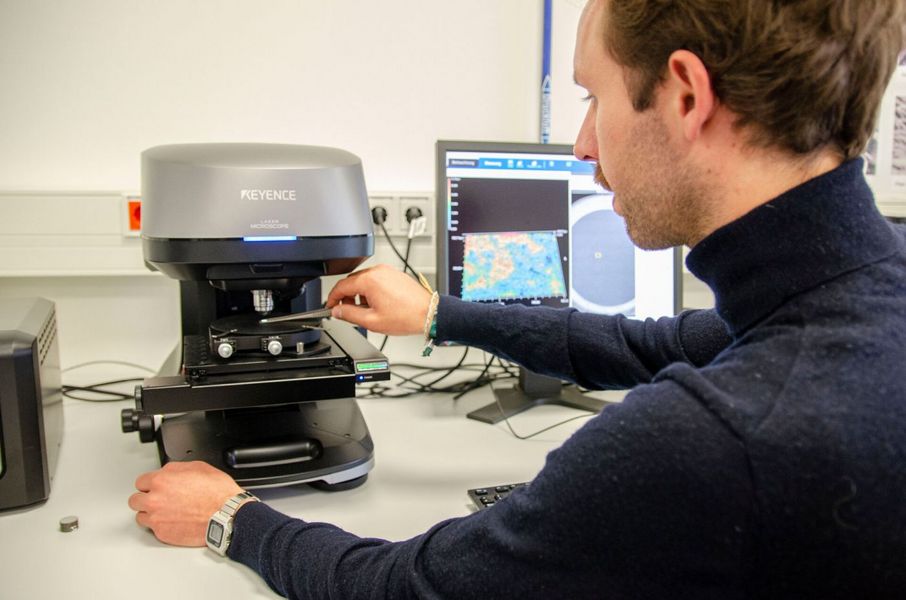 The laser beam scans the sample piece by piece. Only a fraction of the silver ion coating to be analysed is examined using a pinhole - and little by little, the confocal microscope is able to create a 3D model that takes Julian Hasselmann's research a decisive step forward. The acquisition is new to the Materials Technology Laboratory at the Department of Mechanical Engineering, which is headed by Prof Dr Gerhard Gevelmann and Dr Miriam Laubrock. The confocal microscope not only helps doctoral students like Hasselmann, but also prepares students even better for their future engineering careers.