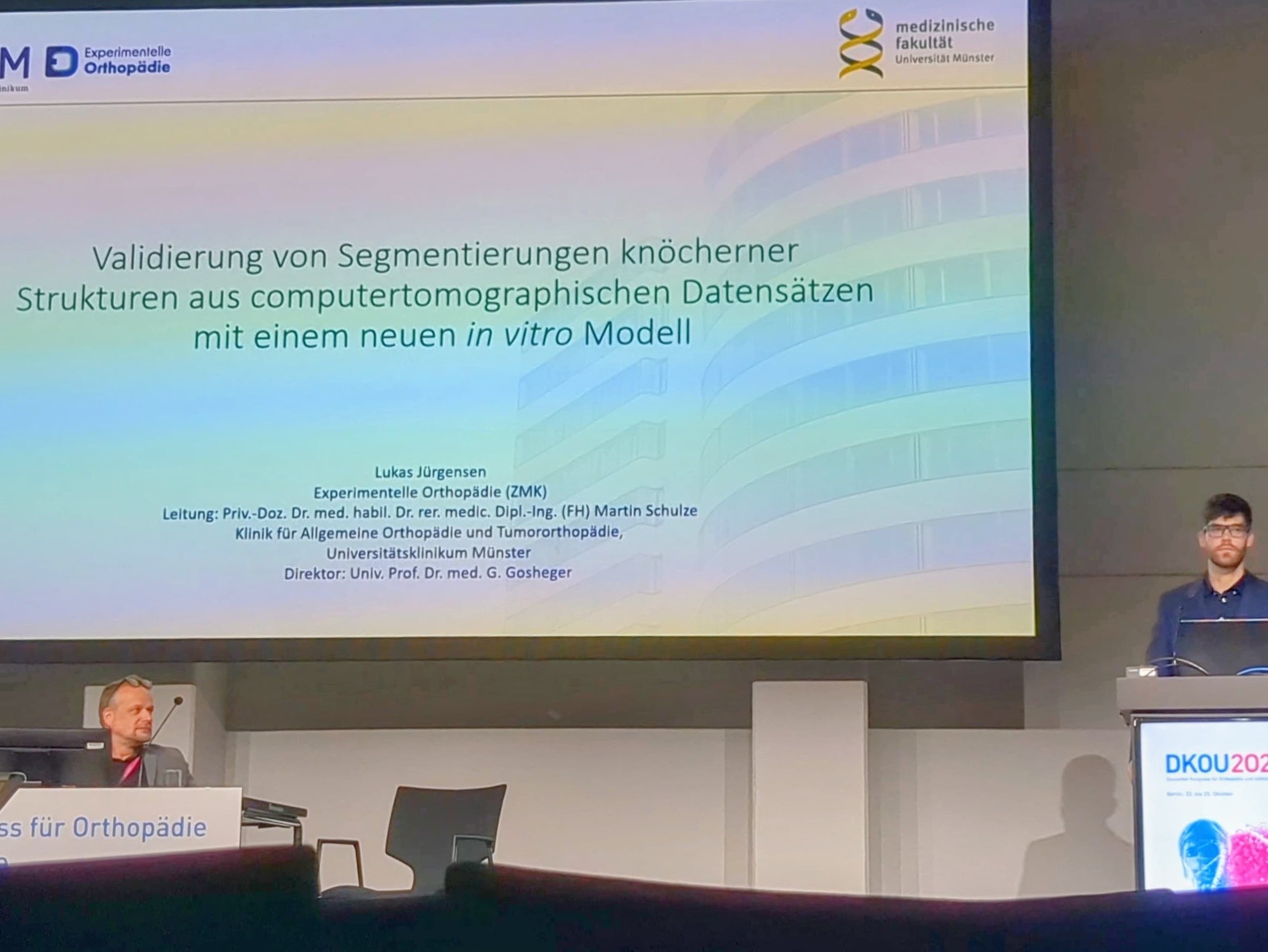 We would like to congratulate Lukas Jürgensen on successfully defending his doctoral thesis at the Faculty of Medicine at the University of Münster. His thesis, entitled “The development and evaluation of a process-oriented concept for the individualized care of tumor patients in orthopedics using 3D printing and navigation,” was supervised by Dr. Martin Schulze and Prof. Walter Heindel.