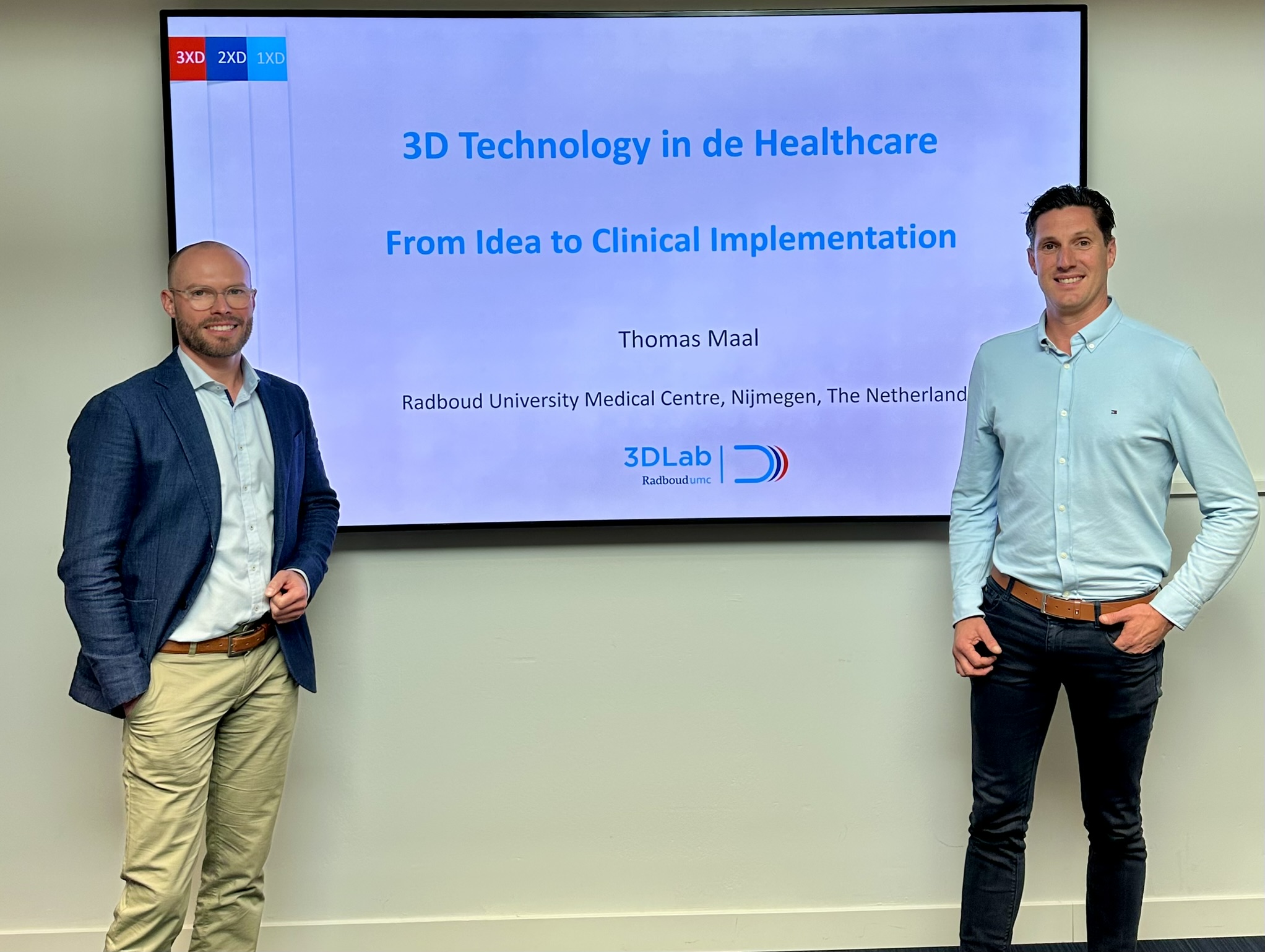 On May 12, 2025, PD Dr. Martin Schulze, head of the 3D-Lab at Münster University Hospital, visited the Radboudumc in Nijmegen with a small delegation from UKM. There, he met Prof. Thomas Maal, head of the 3D lab, in person for the first time. The meeting focused on exchanging ideas about innovative 3D technologies and their application in clinics.