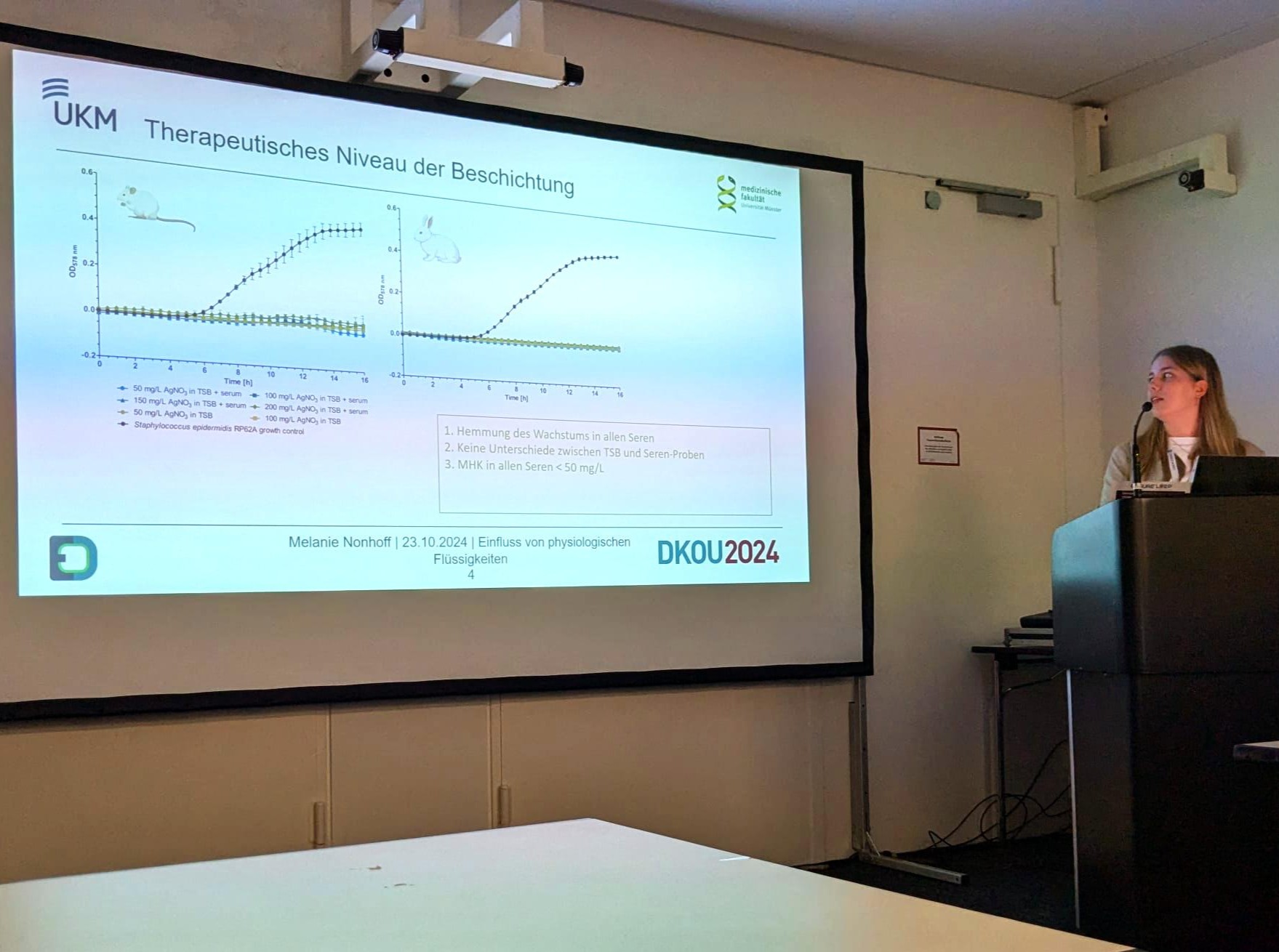 With over 10,000 participants, the DKOU is the largest specialist congress for O and U in Europe. In addition to networking and partnerships, it was an ideal platform to present our current clinical and experimental research results in three lectures. In the basic research session, we had the opportunity to present our activatable anti-infective implant coating to a broad audience of medical and medical technology specialists.