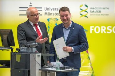 News aus dem Jahr 2024 1/2/2024Unerfüllter Kinderwunsch: Spermien ohne „Durchsetzungsvermögen“ können die Ursache sein 1/3/2024Millionenförderung für „EyeMatics“: Verbund erforscht Unterschiede zwischen Theorie und Praxis bei Augenbehandlungen 1/3/2024„Wunderwaffe“ Super-Sox: Künstlicher Transkriptionsfaktor reprogrammiert Zellen mit hoher Effizienz 1/9/2024Künstliche Intelligenz unterstützt bei Leukämie-Diagnostik: Forschende entwickeln neues Verfahren 1/9/2024Dem plötzlichen Herztod auf der Spur: Deutsche Herzstiftung fördert münstersche Herzgenetik 1/12/2024Kommunikation der besonderen Art: Krebsforscherin Kerstin Menck zur GSEV-Vorstandsvorsitzenden gewählt 1/12/2024Brustkrebs-Früherkennung: Neue TOSYMA-Analyse untermauert Vorteile des DBT+SM-Einsatzes gegenüber dem bisherigen Standard 1/15/2024Ein Trio setzt sich mit Ellenbogen durch: Arbeitsgruppe „Mathematische Chirurgie“ erhält Förderung der DGU 1/16/2024Das "Paper of the Month" 12/2023 geht an: Wolfgang Linke und Christine Loescher aus dem Institut für Physiologie II 1/17/2024Pädiatrie mit Potenzial: Alexander Busch ins Junge Kolleg der Wissenschaftsakademie NRW aufgenommen 1/20/2024Pionierin der Pädiatrischen Nephrologie und besonders der Kinderdialyse: Monika Bulla verstorben 1/29/2024Neuer IZKF Vorstand gewählt 2/2/2024Ein „Angst-Macher“ im Dienste der Forschung: Hans-Christian Pape zweifach ausgezeichnet 2/3/2024Reihe „100 Jahre“ // Wilde Siebziger: Wieso die Pharmakologie fast 80 Kilogramm Cannabis bunkerte 2/8/2024Reihe "100 Jahre" // Helau: Vor 75 Jahren wurde auch an der Medizinischen Fakultät wieder Karneval gefeiert 2/15/2024Das "Paper of the Month" 01/2024 geht an: Stefanie Weigel und Walter Heindel aus der Klinik für Radiologie 2/16/2024Für die „gesamte Palette der Medizin“: Tanja Grammer ist die erste Professorin für Allgemeinmedizin an der Uni Münster 2/19/2024Implantate, Modelle und Instrumente nach Maß am „Point-of-Care“: Eröffnung des 3D-Centers an der münsterschen Universitätsmedizin 2/26/2024Gegen das frühe Vergessen: Uni Münster an internationaler Studie zur Niemann-Pick-Erkrankung beteiligt 2/26/2024Millionenförderung für MS: EU fördert Forschung zum Zusammenhang zwischen Multipler Sklerose und EBV-Infektion 3/4/2024Auf einer Reise in ein unbekanntes Land: Christos Gatsogiannis verantwortet die Kryo-Elektronenmikroskopie an der Uni Münster 3/15/2024Das "Paper of the Month" 02/2024 geht an Jacqueline Kockwelp (CeRA), Jannis Bartsch, Christoph Schliemann und Linus Angenendt (Med A) 3/15/2024Gegen bittere Pillen hilft trainieren: Uni Münster schickt Studierende in eine simulierte Stationsapotheke 3/22/2024„Fehler sind hier erlaubt“: interprofessionelle Trainings für angehende Pflegekräfte und Medizinstudierende 3/28/2024Reihe "100 Jahre" // Licht, Luft und Sonne: Die neuen Uni-Kliniken in Münster beeindruckten 1925 auch die Baufachwelt 3/28/2024Elf Vorträge, zehn Poster und zwei Preise: Rund 100 Gäste informieren sich beim „IMF-Projects-in-Progress-Symposium“ 3/29/2024MS ist nicht gleich MS: Wegweisendes Projekt zeigt: Multiple Sklerose hat auf Zellebene drei verschiedene Erscheinungsformen 4/5/2024Im Einsatz für Klima und Gesundheit: Franziska Köster will Zukunft nicht hinnehmen, sondern gestalten 4/9/2024Johannes Gutenberg-Stiftungsprofessur 2024 für Bettina Schöne-Seifert 4/12/2024Das "Paper of the Month" 03/2024 geht an Sarah Sandmann, Sarah Riepenhausen, Lucas Plagwitz und Julian Varghese vom Institut für Medizinische Informatik 4/12/2024Innovative Behandlung von Hirntumoren: Aminosäure 5-ALA soll Effektivität der Strahlentherapie steigern 4/17/2024Große Erkenntnisse im Bereich eines Tausendstel Millimeters: Uni Münster bekommt ein „Research Center for Mass Spectrometry Imaging“ 4/19/2024Anschub für Osteoporose-Forschung: Ralf Adams erhält weiteren ERC Advanced Grant 4/22/2024MS ist nicht gleich MS: Wegweisende Studie zeigt, dass Multiple Sklerose auf Zellebene drei verschiedene Erscheinungsformen hat 4/24/2024Präzisionsmedizin made in Münster: Arbeitsgruppe Bäumer erhält 1,6 Millionen Euro vom Bundesforschungsministerium 4/25/2024Citizen-Science-Preis für Planetologie und Medizin: Uni-Stiftung prämiert zwei bürgerwissenschaftliche Projekte 4/29/2024Universitäre Genetik neu aufgestellt: Fachdisziplin erhält Zentrumsstruktur und eine eigene Klinik 5/2/2024Bestnoten für die Examensergebnisse: Medizin der Uni Münster punktet im aktuellen CHE-Ranking 5/6/2024Two new seminar series 5/13/2024Das "Paper of the Month" 04/2024 geht an Andreas Schulte-Mecklenbeck, Heinz Wiendl, Luisa Klotz, Catharina C. Gross, Olga Steinberg, Timo Wirth und Sarah Lauks von der Klinik für Neurologie 5/15/2024Auch mit Halluzinogenen gegen die Depression: Klinik für Psychische Gesundheit erforscht neue Therapieoptionen – und sucht Probanden 5/28/2024Lachen, wenn der Arzt kommt: Lüder Warnken ist Lebensretter auf besonderer Mission 5/29/2024Ein Meilenstein in der Epigenetik der Reproduktion: Münstersche Forschungsgruppe entschlüsselt männlichen Fruchtbarkeitscode 5/31/2024Neuer Sonderforschungsbereich für die Medizin: DFG fördert zwei Forschungsverbünde an der Uni Münster 6/3/2024Symposium 6/6/2024Blutgefäße sind „Pioniere“ der Knochenbildung im Schädel: Neue Langzeit-Mikroskopie-Methode zeigt Unterschiede zu Röhrenknochen 6/8/2024Nach 24 Jahren: Allrounder Ludwig Kiesel scheidet aus der Leitung der Uniklinik für Frauenheilkunde und Geburtshilfe aus 6/11/2024Für ein besseres Verständnis der Mukoviszidose: Barbara Kahl erhält Förderzusagen für zwei Forschungsprojekte 6/11/2024Für eine bessere Typisierung junger Leukämiekranker: Carreras-Stiftung vergibt Stipendium an Finn Lamp 6/15/2024Mund auf bei schlechter Zahnhygiene: Bettina Pfleiderer erhält Preis für Initiative zugunsten vernachlässigter Kinder 6/17/2024Körpereigene Fette beeinflussen psychische Erkrankungen: Hilfe durch spezifische Hemmstoffe