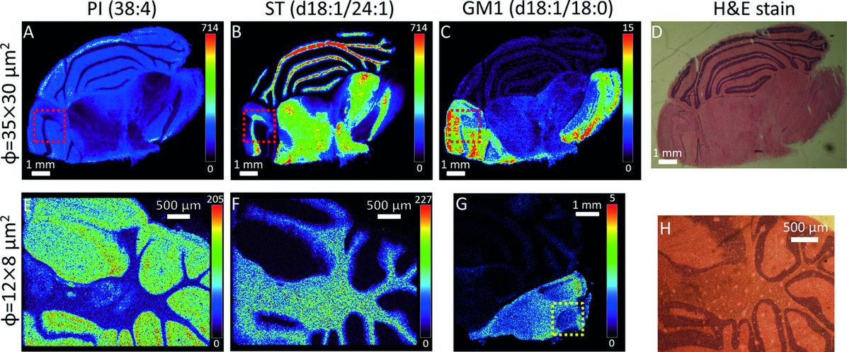 MALDI-MS images acquired from coronal mouse brain slices. © American Chemical Society, 2014. Principal investigator: Klaus Dreisewerd