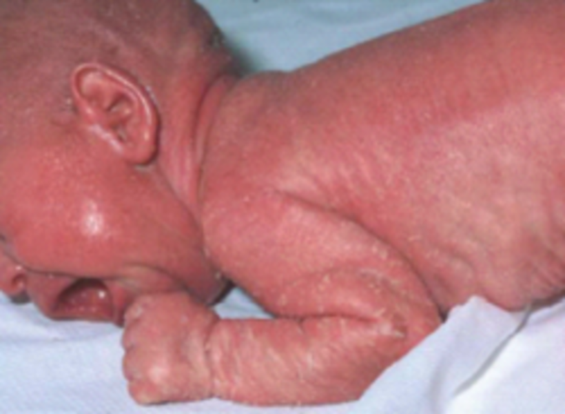 The inflamed skin is highly permeable for water (transepidermal water loss) necessitating for the children in the first weeks of life admittance to a neonatal intensive care unit where in particular problems with fluid loss (hypernatremic dehydration) have to be coped with.