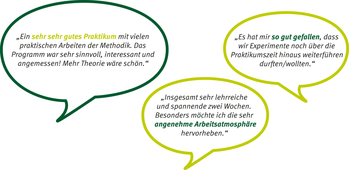Jede/r Studierende absolviert ein Praktikum in einer Arbeitsgruppe.
