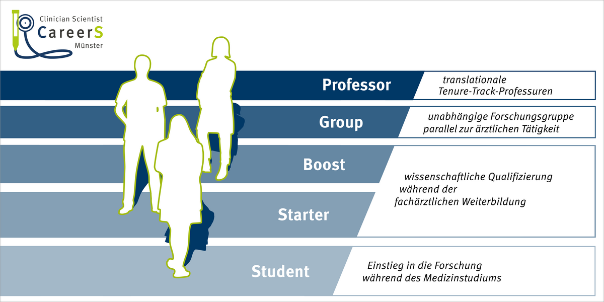 Wir wollen Sie als forschende Ärztinnen und Ärzte fördern! Unser CareerS-Programm ist für Kandidatinnen und Kandidaten aller klinischen Disziplinen und für alle Forschungsthemen geöffnet. Für unterschiedliche Karrierestufen bietet das Programm passende Module.