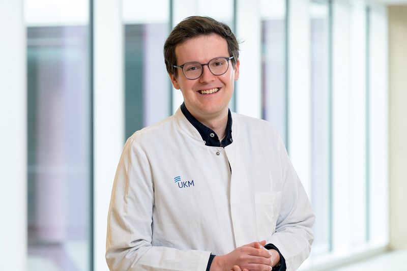 Dr. Fabian Troschel ist Assistenzarzt in der Klinik für Strahlentherapie am UKM. Mit einer Förderung als Clinician Scientist widmet er aktuell 50 Prozent seiner Arbeitszeit der Grundlagenforschung mit seiner eigenen Arbeitsgruppe. Ein Interview zu seinem bisherigen Karriereweg.