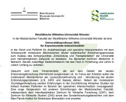 Frühere News aus dem Jahr 2011 03.01.2011 Alle reden vom Wetter – Gardemann nicht: Humanitäre Hilfe lädt wieder ein zur Praxisübung 05.01.2011 „Lehre braucht den Lustfaktor“: Hertie-Stiftungs-Chef Madeja über seine Zeit als Student und „Assi“ in Münster 07.01.2011 Neujahrsempfang der WWU: Erneute Auszeichnung für Promotionspreis-Gewinner Dr. Thomas Kaiser 10.01.2011 Viertes WWU-Neumitglied in einem Jahr: Rechtsmedizinern Heidi Pfeiffer in die Leopoldina aufgenommen 11.01.2011 Meilenstein des Masterplans: Neues PAN-Zentrum bündelt Institute für Pathologie, Anatomie und Neuropathologie 12.01.2011 Studentischer Ideenwettbewerb „StipVisite“: Jury prämiierte die zehn besten Vorschläge 14.01.2011 Mehr Freiheit für den Stundenplan: WWU-Mediziner erfassen elektronisch die Anwesenheit ihrer Studierenden 17.01.2011 Eigentlich nur Ersatzkandidatin: 19-jährige Medizinstudentin gewinnt beim Science Slam das Goldene Hirn 19.01.2011 „Barmherzige Samariter“ im Zentralen Nervensystem: Pro-ZNS-Promotionspreis geht an Studie über HLA-G 21.01.2011 „Uneinnehmbare Festung“: Einklagen ins Medizin- oder Zahnmedizin-Studium hat an WWU geringe Erfolgsaussicht 22.01.2011 Erst Stammzelle, dann reife Blutzelle? Transfusionsmedizin erhält Förderung der Karl-Landsteiner-Stiftung 23.01.2011 Neuerscheinung: Uni-Archiv veröffentlicht Briefwechsel von Prof. Hermann Freund in seiner Schriftenreihe 25.01.2011 DFG-Förderzusage über fast 4,2 Mio. Euro: Graduiertenkolleg zur Infektionsforschung wird fortgeführt 26.01.2011 Universitätsprofessur für Neuroimmunologie ausgeschrieben 28.01.2011 Gesichter als bunte Landschaften: Uni-Zahnmediziner entwickelten strahlungsfreies 3-D-Messsystem 31.01.2011 Experte für neuro-anästhesiologische Fragen: Prof. Karl-Heinz Schoeppner 89-jährig in Münster verstorben 01.02.2011 Multiple Sklerose und die Rolle der Blutgerinnung: Oppenheim-Förderpreis für Forscherteam um Prof. Meuth 03.02.2011 WWU-Physiologe Prof. Hans-Christian Pape in den Wissenschaftsrat berufen 08.02.2011 Landesweit 200 Studienanfänger mehr pro Jahr: Kabinett beschließt Erhöhung der Medizin-Studienplätze 09.02.2011 Diagnose Ärztemangel: Kammer, Universität und Uni-Klinik fordern Politik zu raschem Gegensteuern auf 11.02.2011 Ausbau des Nanotechnologie-Standortes Münster: „Biomedizinisches Technologiezentrum“ gegründet 15.02.2011 Triple-negatives Mammakarzinom: Forschungen von Dr. Liedtke finden weltweite Anerkennung 18.02.2011 Promotionsabschluss-Stipendium der WWU für Peter Kahr 20.02.2011 Chronische Osteomyelitis im Kieferknochen: Posterpreis der DGZMK für Zahnmediziner 22.02.2011 Multitasking verringert die Leistung: Angehende Medizinstudentin erforschte Lernverhalten von Schülern 22.02.2011 Infos für Betroffene und Angehörige: UKM und Medizinische Fakultät laden ein zum "Tag der Krebsforschung 2011" 24.02.2011 Stammzellforscher Hans Schöler zum Mitglied der Akademie der Wissenschaften und der Literatur ernannt 28.02.2011 Vorentscheid bei der Exzellenzinitiative: Am Mittwoch geht es auch um Cluster-Antrag „Cells in Motion“ 01.03.2011 Neues Gerät hilft Patienten mit Herz-Rhythmus-Störungen: Herzzentrum-Promotionspreis für Gerrit Kaleschke 02.03.2011 Exzellenz-Initiative: Cluster-Antrag „Cells in Motion“ und Graduiertenschule "Evolution" nehmen erste Hürde 02.03.2011 Weiterer Baustein für "Cells in Motion": Professur für Multiscale Optical Imaging ausgeschrieben 04.03.2011 Mit besserer Bildgebung Hirntumoren bekämpfen: Forschungsförderpreis für Dr. Astrid Jeibmann 07.03.2011 Bakterium mit Tarnkappe: Wie Staphylococcus aureus die Abwehrkräfte des Körpers und Antibiotika austrickst 09.03.2011 Entscheidung gefallen: Rolf-Dierichs-Stiftung fördert weitere sechs Projekte an der Medizinischen Fakultät 11.03.2011 Nahtod-Erfahrungen: „Studienhospital Münster“ wird zum Schauplatz einer Theater-Uraufführung 14.03.2011 Wer laut hören will, könnte es später fühlen: Neue Studie weist auf Spätschäden von Musikkonsum mit Kopfhörer hin 15.03.2011 Walter-Engel-Preis der Akademie für Zahnärztliche Fortbildung Karlsruhe geht an Anne Wolowski 17.03.2011 Atemstillstand zum Anklicken: Wie Fachaufsätze und Lehrmaterial das „Sprechen“ lernen 17.03.2011 Partner-Uni der Fakultät nur 200 Kilometer vom Unglücksreaktor entfernt: Sorge um die Kollegen in Mibu 18.03.2011 Kardiovaskuläre Bildgebung: Stiftungsprofessur der Peter-Lancier-Stiftung ausgeschrieben 21.03.2011 Abgabefrist für Anträge auf IMF-Förderung endet am 1. April 22.03.2011 Anerkennung für Forschung zu kindlichen Knochentumoren: Prof. Heribert Jürgens erhält Deutschen Krebspreis 25.03.2011 Einsatz für Patienten, Forschung und Aufbau Ost: Bundesverdienstkreuz für Prof. Jürgen van de Loo 28.03.2011 Mehr Platz, mehr Tickets, mehr Auflagen: Dendemann und Kettcar spielen beim Sommer-Fieber 2011 29.03.2011 Medizinische Verbundforschung 2.0: Experten diskutieren in Münster über Strategien der Vernetzung 30.03.2011 Wie man ungewollt Wirt wird: Besuchermagnet "MenschMikrobe" wandert nach Münster 03.04.2011 Mehr (finanzielle) Freiheit für Forschung und Lehre: DFG unterstützt das Publizieren via "Open Access" 05.04.2011 Asthma und Allergien auf dem Vormarsch: Weltweite Mammut-Studie „ISAAC“ zieht nach 20 Jahren Bilanz 06.04.2011 Studie zur Metastasenbildung bei Brustkrebs: Möller-Förderpreis für Dr. Viktoriya Nikolova 08.04.2011 Helfen oder zum Zuschauen verdammt? 1. Münsterscher Kongress zur Humanitären Hilfe 09.04.2011 Proben und Daten im Netzwerk: Nachwuchspreis an Martin Lablans für innovative Biomaterial-Plattform 12.04.2011 ILIAS beendet die Odyssee bei der Materialsuche: neue elektronische Lehr- und Lernplattform 15.04.2011 Gefahr aus dem Schweinestall: Neuer Forschungsverbund zur Übertragung von Krankheiten von Tieren auf Menschen 16.04.2011 Kürzer im Krankenhaus, kränker zur Reha: Studie zeigt die Folgen des Fallpauschalensystems 20.04.2011 APS Young Inves