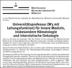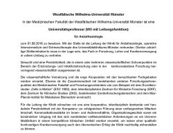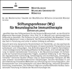 News aus dem Jahr 2015 01.01.2015 Web-App hilft beim Erbgutabgleich von Säugetieren 04.01.2015 Interdisziplinäre Forschung zum Ewing-Sarkom: Dr. Lennart Liebsch erhält den Maria-Möller-Promotionspreis 06.01.2015 Nobelpreisträger mit Lehrauftrag an der Uni Münster: Domagk-Film jetzt auf DVD erhältlich 10.01.2015 Preise für Hemping-Bovenkerk und Global Brigades: WWU-Neujahrsempfang im Zeichen von Kunst und Literatur 11.01.2015 Langjähriger Leiter des Instituts für Zahnärztliche Röntgenologie: Prof. Walter Ritter verstorben 14.01.2015 Keine weiteren Fieber-Infektionen: Aus für Open-Air-Festival ist beschlossene Sache 20.01.2015 Münster hoch drei: Eine ganze Familie studiert(e) Medizin an der WWU 21.01.2015 Molekulare Grundlagen der Eisenregulation: Dr. Steinbicker in Junges Kolleg der NRW-Wissenschaftsakademie aufgenommen 26.01.2015 Mehr Patienten, mehr Drittmittel, neue Bauprojekte: UKM und Medizinische Fakultät ziehen beim Neujahrsempfang positive Bilanz 29.01.2015 Genmutation ist die Ursache des Singleton-Merten-Syndroms: Seltene Erbkrankheit in Münster entschlüsselt 30.01.2015 Expertise im vaskulären und kardiovaskulären Bereich erforderlich: Universitätsprofessur für Physiologie ausgeschrieben 02.02.2015 Auszeichnung für Nachwuchsforscherin: Dr. Verena Hofschröer erhält Promotionspreis der Deutschen Hochdruckliga 02.02.2015 Mitgliederzuwachs, positive Bilanz und 6.000 Euro als Spende: Alumni-Verein medAlum blickt auf erfolgreiches Jahr 2014 zurück 04.02.2015 Helmut-Bauer-Nachwuchspreis für Multiple-Sklerose-Forschung verliehen: Auszeichnung für Breuer und Schwab 05.02.2015 Kompetenznetz Vorhofflimmern e.V. mit neuer Geschäftsstelle und DZHK-Teilförderung seit Anfang 2015 10.02.2015 Teilnehmerrekord und erstmals ein Hauptpreis: Jury ermittelte Gewinner der StipVisite 2014 11.02.2015 Gipfeltreffen der Reproduktionsmedizin: gleich drei Workshops locken Experten nach Münster 18.02.2015 Teenager als Väter: Studie zeigt erhöhte Zahl von Erbgutveränderungen 18.02.2015 Schonend und exakt: PET-MRT ermöglicht hochauflösende Bilder aus dem Körperinneren 18.02.2015 Experte für die Bildung neuer Blutgefäße: Prof. Peter Carmeliet hält die „Münster Heart Center Lecture 2015“ 20.02.2015 Monozyten und Messverfahren im Fokus: zwei hoch dotierte Förderpreise für münstersche Rheumaforschung 22.02.2015 Würdigung außerordentlicher Verdienste um die Herzchirurgie: Prof. Hans Heinrich Scheld wird Ehrenmitglied der DGTHG 23.02.2015 Entwicklung des Fachs maßgeblich vorangetrieben: Prof. Jürgens verabschiedet sich als Direktor der Kinderonkologie 24.02.2015 Ausschreibung: Interne Nachwuchsgruppen 26.02.2015 Internationales Projekt mit münsterscher Beteiligung entschlüsselt die Nanomechanik von Nervenfasern 27.02.2015 Forschungspreis für Seltene Erkrankungen 2015: Prof. Heymut Omran erhält 50.000 Euro von der Köhler-Stiftung 01.03.2015 „Kollektive Fürsorgepflicht“ für 70.000 Angestellte: der oberste RWE-Arbeitsmediziner Dr. Christian Feldhaus im Porträt 02.03.2015 Mehr als 20.000 Herzoperationen verantwortet: Prof. Herbert Dittrich verstorben 02.03.2015 Neue Leitung der Kinderonkologie: Prof. Claudia Rössig wird Nachfolgerin von Prof. Heribert Jürgens 03.03.2015 Stiftungsprofessur für Neurologische Immuntherapie ausgeschrieben 05.03.2015 Sogar Vitamine lassen sich sichtbar machen: Forscherteam setzt neue Maßstäbe bei MALDI-Massenspektrometrie 06.03.2015 Mäuse und Menschen keimen gleich - und doch anders: MPI-Forscher entwickeln robustes System für In-vitro-Entwicklung menschlicher Keimzellen 11.03.2015 Abgabefrist für Anträge auf Forschungsförderung endet am 1. April 2015 18.03.2015 Besondere Ehre für MPI-Direktor: Prof. Schöler in Vorstand der International Society for Stem Cell Research berufen 03.04.2015 Berufungsverfahren angelaufen: Universitätsprofessur für Anästhesiologie 07.04.2015 Prof. Faldum spricht für Biostatistik-Arbeitsgemeinschaft 13.04.2015 Drohende Dauerschäden für das Auge: Wissenschaftler warnen vor Langzeitfolgen von Schnüffeldrogen 15.04.2015 Ausschreibungsfrist endet: Interne Nachwuchsgruppen der Medizinischen Fakultät Münster 17.04.2015 Einzigartige Zusatzqualifikation: neues Studienprogramm „Experimentelle Medizin“ an der Universität Münster 23.04.2015 Rechenschwäche überwinden: WWU-Forscher bieten Förderung für Grundschulkinder an 24.04.2015 Atmen erlaubt: Neues Computerprogramm korrigiert "Verwackelung" von PET-Aufnahmen 24.04.2015 100.000 Leser und 1.000.000 Seitenaufrufe monatlich: Website der Medizinischen Fakultät in neuer Optik 30.04.2015 Beschwerden am Kniegelenk: Uni-Mediziner suchen Probanden für Studie zu Arthrose und Verschleiß 02.05.2015 Neue Erkenntnisse zu Krebs bei Kindern: Dr. Annabelle Zoghbi erhält Maria-Möller-Preis 05.05.2015 Spitzenpositionen für Universität Münster in acht Fächern: Auch Medizin mehrfach spitze beim CHE-Ranking 08.05.2015 Untersuchungen zu Herzrhythmusstörungen: Dr. Gerrit Frommeyer erhält Forschungsstipendium 11.05.2015 Sensible Themen engagiert vermittelt: Communicator-Preis der DFG geht an WWU-Alumnus: Prof. Boris Zernikow 12.05.2015 Digitalisierung in der Medizin: Weltweit größtes Portal zu Datenmodellen erhält eine halbe Million Euro Förderung 13.05.2015 Durchbruch in der Andrologie: internationales Team identifiziert Gen als eine Ursache für männliche Unfruchtbarkeit 29.05.2015 Herz und Nieren: Selbstverteidigung verhindert OP-Komplikationen 02.06.2015 „Nationale Kohorte“ jetzt vierstellig: Deutschlandweites Studienprojekt wird in Münster gut angenommen 04.06.2015 Stau in der „Proteinfabrik“: Werden Gene zu langsam abgelesen, droht ein Zell-Burnout 08.06.2015 Zwischen Praxisalltag und Länderspielen: WWU-Alumnus Dr. Lars Lippelt ist Teamarzt der U21-Fußball-Nationalmannschaft 15.06.2015 "Ihnen steht eine erfolgreiche Wissenschaftskarriere bevor": WWU-Nachwuchsförderpreis für Dr. Laura-Maria Krabbe 17.06.2015 Sonne stärkt 