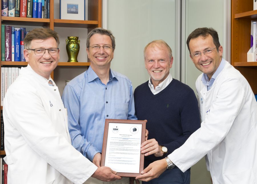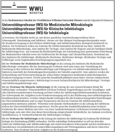 News aus dem Jahr 2017 02.01.2017 Resistenzen aufgedeckt: Christof Bernemann erhält Preis für herausragende Androgenrezeptor-Forschung 05.01.2017 Münsters Uni-Phoniater sind international erfolgreich: zwei Preise auf dem UEP-Kongress in Bilbao 08.01.2017 Mit Preisen zurück aus Berlin: Ehrungen für Orthopäden und Unfallchirurgen der münsterschen Unimedizin 13.01.2017 "We have a drug problem": Initiative UAEM erhält den Studierendenpreis der Universität Münster 18.01.2017 Zwischen Wachstum und Wandel: Münsters Universitätsmedizin geht positiv ins Jahr 2017 19.01.2017 Salz aufs Ei oder besser doch nicht? Erster Schnelltest „to go“ zeigt individuelle Empfindlichkeit für den Bluthochdruck-Faktor Nr. 1 24.01.2017 Management-Aufgaben master-haft erledigen: Info-Abend zu neuem MBA-Studiengang für Ärzte und Führungskräfte im Gesundheitswesen 25.01.2017 Wettlauf gegen die Uhr: Wie CT-Bilder helfen können, den Zeitpunkt eines Schlaganfalls zu bestimmen 27.01.2017 Schmerzforschung: Münstersche Unimediziner bekommen Preis für interdisziplinären Studienansatz 27.01.2017 Grenzgänger und zugleich Brückenbauer zwischen drei Fachdisziplinen: Prof. Ludger Figgener verabschiedet sich in den Ruhestand 01.02.2017 “Türsteher“ an der Blutgefäß-Wand: CiM-Forscher entschlüsseln die Rolle von Laminin 511 bei der Wanderung von Immunzellen 02.02.2017 Pubertäre Bockigkeit oder Depression im Anfangsstadium? Hilfsangebote zur Früherkennung psychischer Probleme bei jungen Menschen 02.02.2017 Genmutation als Ursache für „unsterbliche“ Krebszellen entdeckt: Prof. Matthias Fischer erhält den Domagk-Preis der Universität Münster 07.02.2017 Endometriose-Forschung: Können microRNAs künftig die Bauchspiegelung ersetzen? 08.02.2017 Renommierter Arzt und Forscher, zudem Pionier der Umweltmedizin: Prof. Fritz Kemper vollendet am 9. Februar sein 90. Lebensjahr 14.02.2017 Wo ist der Durchgang? MPI-Forscher beschreiben, wie und wo Stammzellen den Weg aus den Blutgefäßen ins Knochenmark finden 15.02.2017 Wie „robbt“ die Zelle vorwärts? CiM-Forscher untersuchen mit einer Licht-Pinzette die mechanischen Eigenschaften von Zellen 18.02.2017 Aller guten Vorschläge sind zehn: Medizinische Fakultät zeichnet StipVisite-Gewinner des Jubiläumsjahres aus 21.02.2017 Der Roboter, der „fühlen“ kann: Verbesserte Simulationsmöglichkeiten zur Diagnostik und Therapie in der Unfallchirurgie 23.02.2017 Ein Dortmunder an der Isar: Alumnus Dr. Jochen Hahne ist Mannschaftsarzt der FC-Bayern-Basketballer - und der deutschen Fußball-Nationalelf 28.02.2017 Molekulargenetik eröffnet Therapieoption: Forscherteam identifiziert Mutation, die Herzrhythmusstörungen verursacht 01.03.2017 Neue Heisenberg-Professur: Dr. Kay Grobe verstärkt molekulare Forschung an der Uni Münster 02.03.2017 Nach dem Schlaganfall die Worte wiederfinden: Weltweit einmalige Studie belegt Wirksamkeit intensiver Sprachtherapie bei chronischer Aphasie 02.03.2017 WWU zieht Konsequenzen nach Plagiats-Vorwürfen: Medizinische Fakultät entzieht acht Doktortitel 03.03.2017 Neues vom Biber: Forscher der Uni Münster nagen am bisherigen Stammbaum der Staudamm-Bauer 06.03.2017 Hilfreicher Umweg außerhalb des Körpers: Münstersche Wissenschaftler programmieren Hautzellen zu Hirnzellen um und erleichtern so die neurologische Forschung 07.03.2017 Vorstoß in die vierte Dimension: Bundesforschungsminsterium fördert mit fast 840.000 Euro Verbundprojekt zur Bildgebung in der Medizin 07.03.2017 "Wie dürfen wir Kinder machen?" Prof. Schöne-Seifert vom IEGTM Münster in TV-Diskussion 16.03.2017 Moleküle als Massen-Phänomen: Prof. Klaus Dreisewerd für seine Verdienste um die Massenspektrometrie in den Biowissenschaften ausgezeichnet 20.03.2017 Ausschreibung IMF-Forschungsförderung zum 1. April 2017 24.03.2017 Die Hälfte ist geschafft: 5.000ster NAKO-Proband nimmt eigens Urlaub für die Wissenschaft 24.03.2017 Millionenförderung aus dem "Human Frontier Science Program": Internationale Anerkennung für Biophysiker Prof. Timo Betz 31.03.2017 Ärztliche Fort- und Weiterbildung: Unimedizinerin Prof. Eva Wardelmann zur Präsidentin der Internationalen Akademie für Pathologie in Deutschland ernannt 03.04.2017 Erstes „Symposium on Infection Biology“ an der Universität Münster 05.04.2017 In der Top 10 von 2.270 Hochschulen: Dermatologie der WWU Münster erreicht Spitzenplatzierung in weltweitem Universitätsvergleich 06.04.2017 Ein „Urgestein“ seines Faches und der münsterschen Universitätsmedizin: Prof. Fritz H. Kemper verstorben 07.04.2017 Familienbande von Fledermaus, Hund, Kuh und Pferd: Genomanalyse zeigt Verwandtschaftsnetz 10.04.2017 (K)eine wie jede andere: Die landesweit einmalige „Campus-Praxis“ stärkt die Allgemeinmedizin - und zeigt die Faszination dieses Faches 12.04.2017 Rätselhafter Gebärmuttererkrankung auf der Spur: Münstersche Gynäkologin erhält Preis für Endometriose-Forschung 14.04.2017 EHEC-Forschung: Möglicher Ansatzpunkt für Impfstoff entdeckt 21.04.2017 Fachgutachter ausgezeichnet: Zwei münstersche Uni-Mediziner als „Top Reviewer“ geehrt 02.05.2017 Forschung zu den „Toren“ unserer Skelettmuskelzellen: Dr. Ali Afzali erhält Promotionspreis der Medizinischen Fakultät 02.05.2017 PhD students (f/m) stipend 04.05.2017 Aus der Forschung in die Literatur: Prof. Hans Oberleithner veröffentlicht eine „Novelle aus der Welt der Wissenschaft“ 05.05.2017 Prof. Berger neuer Vorsitzender von Deutschlands größter Gesundheitsstudie: Trägerverein der NAKO wählt neues Leitungsgremium 06.05.2017 Ein Münsteraner geht, ein Münsteraner kommt: Endokrinologen wählen Prof. Martin Götte zu ihrem Sektionssprecher für Reproduktion 07.05.2017 Mit der „Drogenhilfe“ die Drogenszene geprägt: Dr. Ulrike Ullrich leitete fast 30 Jahre den Sozialpsychiatrischen Dienst Dortmund 12.05.2017 Indikator für Medikament-Wirksamkeit entdeckt: Dr. Phillip Mikah erhält Maria-Möller-Dissertationspreis für