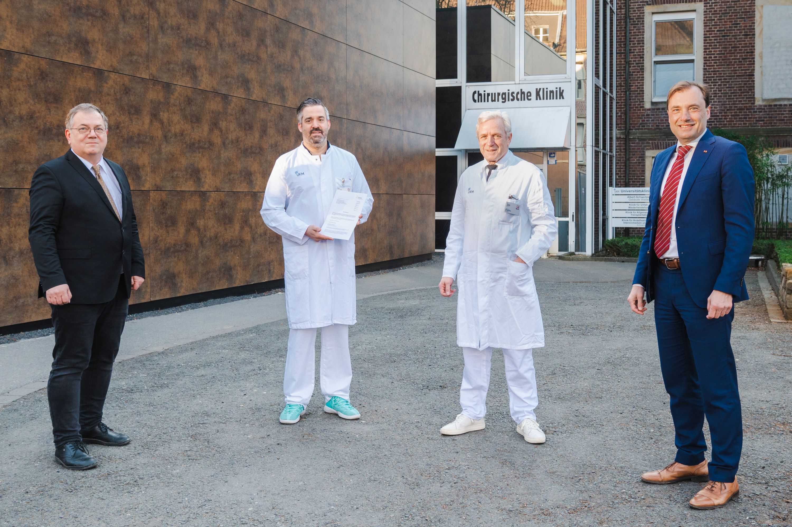 News aus dem Jahr 2022 07.01.2022 Maxi-Förderung für Minipubertät: DFG bewilligt Alexander Busch 1,4 Mio. Euro für Aufbau einer Forschungsgruppe 07.01.2022 Interdisziplinär gegen den Krebs: Die münstersche Strahlenbiologie entwickelt innovative Verfahren zur Tumorbehandlung 09.01.2022 „Ich wusste schon als Kind, dass ich Wissenschaftlerin werden möchte“: Lydia Sorokin über ihre Arbeit in der Forschung 11.01.2022 Avrion-Mitchison-Preis für Dr. Denise Beckmann 12.01.2022 Klinische Studie bereits angelaufen: Forschungsteam findet neuartige duale Wirkweise gegen Covid-19 13.01.2022 Entwicklung einer neuen Systematik für Hirnrhythmen: Joachim Groß erhält Millionenförderung von der DFG 14.01.2022 Neujahrsempfang der Universität Münster: Lehrpreis für Hirntod-Modul mit Einsatz von Virtual Reality 14.01.2022 Mehr Klarheit bei der Behandlung von Beckenbrüchen: Münstersche Unfallchirurgen erhalten Forschungspreis 19.01.2022 Das "Paper of the Month" 12/2021 geht an: Josef Stolberg-Stolberg, Christoph Katthagen und Jeanette Köppe aus der UCH-Klinik und dem IBKF-Institut 01.02.2022 Zwischen Virtual Reality und Künstlicher Intelligenz: "Einblicke in die virtuelle" Lehre befristet online abrufbar 03.02.2022 Mehr als nur „traurig“: Psychologe und Mediziner Udo Dannlowski über Depressionen als Volkskrankheit 03.02.2022 Die Betten, die die Welt bedeuten: Eine Theaterpädagogin bildet Simulationspatienten für das Studienhospital aus 04.02.2022 Neue Wege bei Sprachentwicklungsstörungen: WWU-Mediziner erforschen den Einsatz von Online-Therapien bei Kindern 10.02.2022 Studie zur Corona-Impfung: Zweitimpfung mit Biontech steigert Immunantwort effektiver als mit Astra 11.02.2022 Grundlagenforschung zu „Löchern“ im Schutzschirm der Niere: Thaddäus Struk erhält Promotionspreis der Medizinischen Fakultät 15.02.2022 Das "Paper of the Month" 01/2022 geht an: Jan Ernsting und Tim Hahn aus dem Institut für Translationale Psychiatrie 15.02.2022 Häusliche Gewalt: WWU-Medizinerin schult angehende Lehrkräfte im Umgang mit einem schwierigen Thema 18.02.2022 Anerkennung hoch fünf: Preisregen für Unfallchirurgen der Universität Münster 18.02.2022 Leitungsfunktion beim „Sprachrohr“ der deutschen Zahnmedizin: Anne Wolowski neue Generalsekretärin der DGZMK 21.02.2022 Über 300 Veröffentlichungen, über 1.000 Vorträge: Impulsgeber der zahnärztlichen Prothetik feiert seinen 90. Geburtstag 22.02.2022 Neue Ausschreibung des IZKF-Nachwuchsprogramms SEED.projects 23.02.2022 Digitalisierung am OP-Tisch: 1,1 Mio. Euro EU-Förderung für die Optimierung der robotischen Mikrochirurgie 23.02.2022 Vom Modellprojekt zum Rechtsanspruch: WWU-Alumnus Wolf Diemer lebt für die, die am Ende ihres Lebens stehen 24.02.2022 Behandlung bösartiger Tumoren bei Kleinkindern: Till Holsten erhält Maria-Möller-Promotionspreis 26.02.2022 Rare Disease Day: Online-Veranstaltung zeigt, wie spezialisierte Zentren den „Waisen der Medizin“ helfen 28.02.2022 „Probleme immer besser behandelbar“: Podcast mit Medizinerin Katrin Neumann zum Welttag des Hörens 02.03.2022 Auf dem Weg zur Akademisierung: An der WWU laufen Vorbereitungen für Studiengang Hebammenwissenschaft 03.03.2022 Großbaustelle liegt im Plan: MedForCe und BBIM erhalten erste Fassadenteile - und bald den Richtkranz 03.03.2022 1,7 Mio. Euro Förderung für HörGeist: „Leuchtturm-Projekt“ könnte in weltweit erstes Hörscreening für geistig Behinderte münden 04.03.2022 Zu Karneval 11.111 Seiten: Webplattform der Medizinischen Fakultät weiter auf Wachstumskurs 04.03.2022 Zeichen für den Frieden: Türme des UKM leuchten am Wochenende in den Farben der Ukraine 08.03.2022 Ausschreibung IMF-Forschungsförderung zum 1. April 2022 08.03.2022 Internationaler Frauentag - ein Beitrag der EU Commission 08.03.2022 10,8 Mio. Euro für „Novum in der Psychiatrie“: Innovatives Forschungsprojekt geht der Resistenz gegenüber Psychopharmaka auf den Grund 15.03.2022 Das aktuelle "Paper of the Month" (02/2022) geht an: Lena Makowski aus der Klinik für Kardiologie I 16.03.2022 COVID-19-Pandemie: NAKO-Daten belegen Zunahme psychischer Störungen durch berufliche und finanzielle Belastungen 16.03.2022 Alltag der Tierpfleger in der medizinischen Forschung: Initiative Tierversuche veröffentlicht in Münster gedrehten Film 18.03.2022 Mehr Zeit für die „Fischschuppenkrankheit“: Kira Süßmuth erhält Forschungsstipendium der Deutschen Stiftung für Dermatologie 18.03.2022 Wie überstehen Embryos eine Scheintod-Periode? MPI-Forscher Ivan Bedzhov erhält EU-Großförderung für die Klärung 24.03.2022 SARS-CoV-2 geht ins Auge: Coronavirus infiziert die menschliche Netzhaut und kann sich darin vermehren 01.04.2022 Ein Molekül als Keil im Kanal: Forschungsgruppe entschlüsselt Wirkungsweise kardiologischer Medikamentenkandidaten 05.04.2022 Mit dem Wind bis ans Ende der Welt: WWU-Alumnus Eike Sauerbrey ist einer der wenigen „Kaphoorniers“ 07.04.2022 Weltweit anerkannter Patho-Onkologe mit über 430 Publikationen: Ekkehard Grundmann verstorben 08.04.2022 Frau mit zwei Beruf(ung)en: Nadine Heiden verbindet als „Clinician Scientist“ Krankenversorgung und Forschung 08.04.2022 Reproduktionsbiologin mit gefragter Expertise: Verena Nordhoff zur Akademischen Oberrätin ernannt 11.04.2022 Von der Brache zur Denkfabrik: Großprojekte MedForCe und BBIM feiern pünktlich Richtfest 13.04.2022 Erste Ergebnisse der ToSyMa-Studie: Brustkrebs wird mit Kombi-Verfahren signifikant häufiger entdeckt 15.04.2022 Das aktuelle "Paper of the Month" (03/2022) geht an: Joachim Gerß aus dem IBKF und Dirk Föll aus der Pädiatrischen Rheumatologie 20.04.2022 Aussicht auf neue Therapieoption: Forschungsteam entschlüsselt Mechanismen beim Schlaganfall 22.04.2022 Wenn Immunreaktion auf Abwehr stößt: Bei Multipler Sklerose schwächen manche Medikamente den Corona-Impfschutz 22.04.2022 Prorektorate der Universität Münster im Amt bestätigt: Monika Stoll bleibt zustä