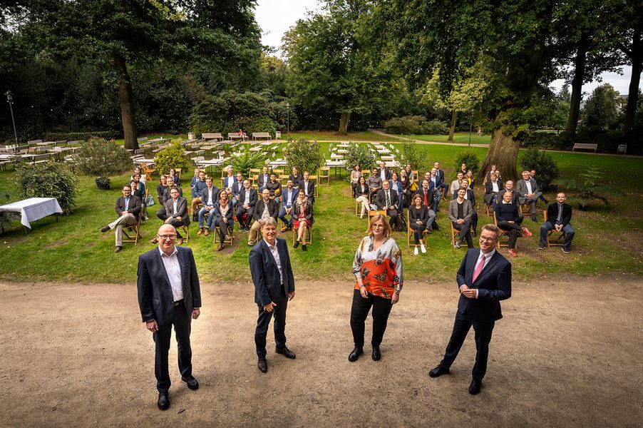 Aufgrund der Coronapandemie hatte das Rektorat die letzten drei Neuberufenen-Begrüßungen absagen müssen. Entsprechend groß war jetzt die Zahl der Gäste: Rund 60 Neuzugänge nutzten die Gelegenheit zum Kennenlernen und zum Austausch mit dem Rektorat und der Verwaltungsspitze der WWU. Die Neuzugänge decken ein breites Lehr- und Forschungsspektrum an der WWU ab. So beschäftigen sich die Forscher beispielsweise mit der Entwicklungsgeschichte der Farne, mit neuen digitalen Geschäftsmodellen für Chemie- und Pharmaunternehmen, Schwarzen Löchern, der Geschichte von Demokratie und Parlamentarismus in Europa und der Keilschrift auf Tontafeln.