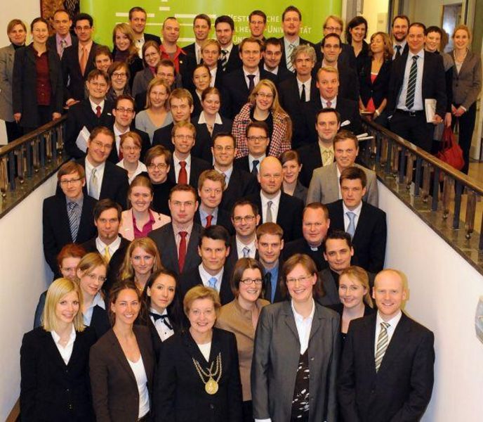 Münster (tb) - Mit einer Feierstunde im Schloss ehrte die Universität Münster heute die Autoren der besten Doktorarbeiten im Studienjahr 2009/2010. Ausgezeichnet wurden auch zwölf Medizinerinnen und Mediziner: Nadine Diermann, Thomas Kaiser, Gerrit Kaleschke, Vera Klaus, Britta Kornmann, Viktoriya Nikolova, Christof Prugger, Natalia Seller, Matthias Unterberg, Christoph Waldeyer, Maria Wolf und Stephan Zellerhoff.