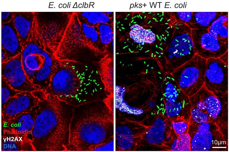 Das Bakterium Escherichia coli (kurz: E. coli) gehört zum menschlichen Darmmikrobioms. Einige Stämme dieser Bakterienart produzieren das Genotoxin Colibactin. Mehr als zwei Drittel der Darmkrebspatienten tragen Colibactin-produzierende E.-coli-Stämme in ihrem Darm. Besonders häufig sind sie bei Darmkrebsarten verbreitet, die mit chronischen Darmentzündungen wie Morbus Crohn und Colitis Ulcerosa im Zusammenhang stehen. Neuere Forschungen haben zudem gezeigt, dass Colibactin spezifische Veränderungen an der DNA der Darmzellen hervorruft.