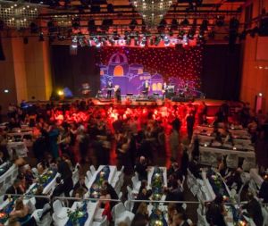 Diese begeisterte das Publikum bis tief in die Nacht mit einer breiten musikalischen Mischung von Standard- über Lateintänzen bis zu aktuellen Hits und ließ es eng werden auf der Tanzfläche. Aber außerhalb der Musikeinlagen blieb der Saal gefüllt, denn entsprechend dem Motto des Balls hielten in den Pausen spektakuläre Artistik-Einlagen das Publikum in Atem: „Dito“ überzeugte zu Beginn mit seinem Exzentriker-Tanz, anschließend faszinierte Andrea Engler zunächst mit einer Hula-Hoop-Show. Später bekam die ausgebildete Luftartistin erneut tosenden Applaus für ihre Akrobatik am Vertikalseil. Den Schlusspunkt des Rahmenprogramms setzten die „Cosmic Artists“ aus Berlin mit einer beeindruckenden „Airtrack“-Sprungakrobatik-Show.