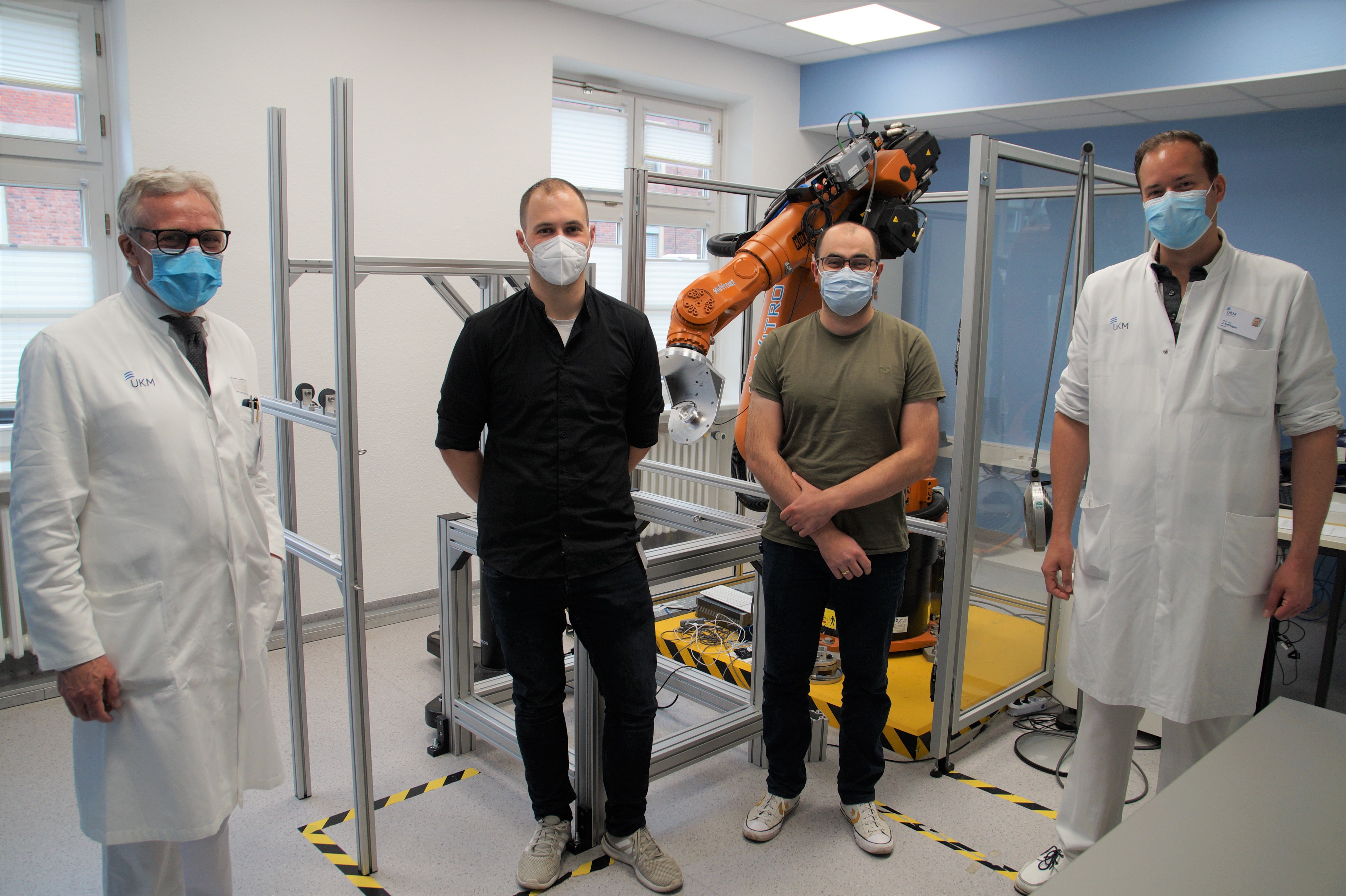 Aus dem Biomechanikteam stellen Dr. Christoph Kittl und Jens Wermers die Einsatzmöglichkeiten eines Roboters in der biomechanischen Knieforschung vor.