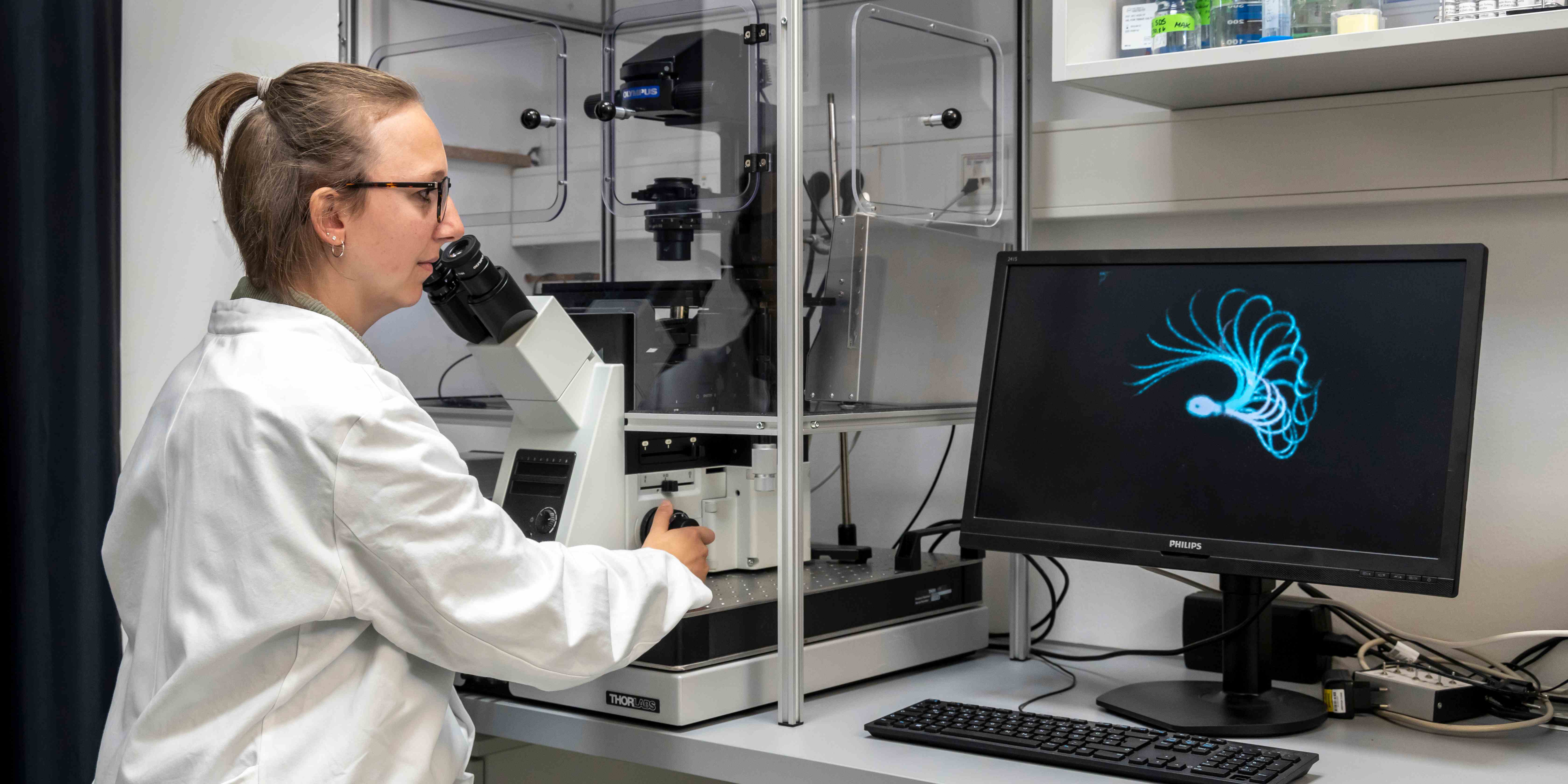 ReproTrack.MS ist ein Nachwuchszentrum für promovierte Forschende aus den Naturwissenschaften und der Medizin; insgesamt umfasst es zehn Arbeitsgruppen an der Universität und dem Universitätsklinikum Münster. Die Neuanschaffungen sind jetzt im Centrum für Reproduktionsmedizin und Andrologie (CeRA), dem Institut für Reproduktionsgenetik (IRG) und der Allgemeinen Pädiatrie in Betrieb gegangen. Ein Highlight darunter: das Super-Resolution-Mikroskop STORM. Dieses ermöglicht es den Forschenden, zelluläre Strukturen mit einer Auflösung von bis zu 20 Nanometern zu analysieren – Aufbau und Funktion weiblicher und männlicher Keimzellen, ebenso des Hodengewebes, kommen damit nun noch genauer „unter die Lupe“. „Die Mechanismen der männlichen Unfruchtbarkeit lassen sich damit auf molekularer Ebene entschlüsseln“, erklärt Prof. Timo Strünker, der das Projekt mit Prof. Sabine Kliesch, Prof. Nina Neuhaus (alle CeRA) und Prof. Frank Tüttelmann (IRG) koordiniert. „Insgesamt befeuert die Investition in neue Technologien unsere reproduktionsmedizinische Forschung.“