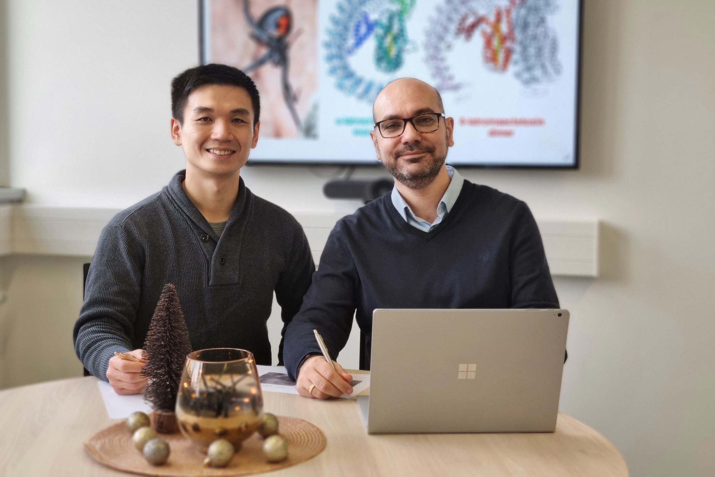 Maximilian Rüttermann und Prof. Christos Gatsogiannis aus dem Institut für Medizinische Physik und Biophysik