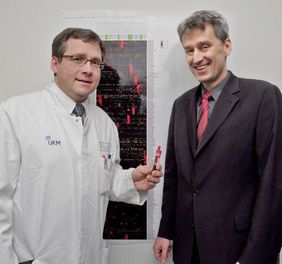 Gemeinsam wollen Prof. Carsten Müller-Tidow (l.) und Prof. Martin Dugas herausfinden, welche genetischen Veränderungen in Leukämiezellen vorhanden sind, um so die bestmögliche Therapie für jeden einzelnen Patienten zu finden (Foto: FZ)
