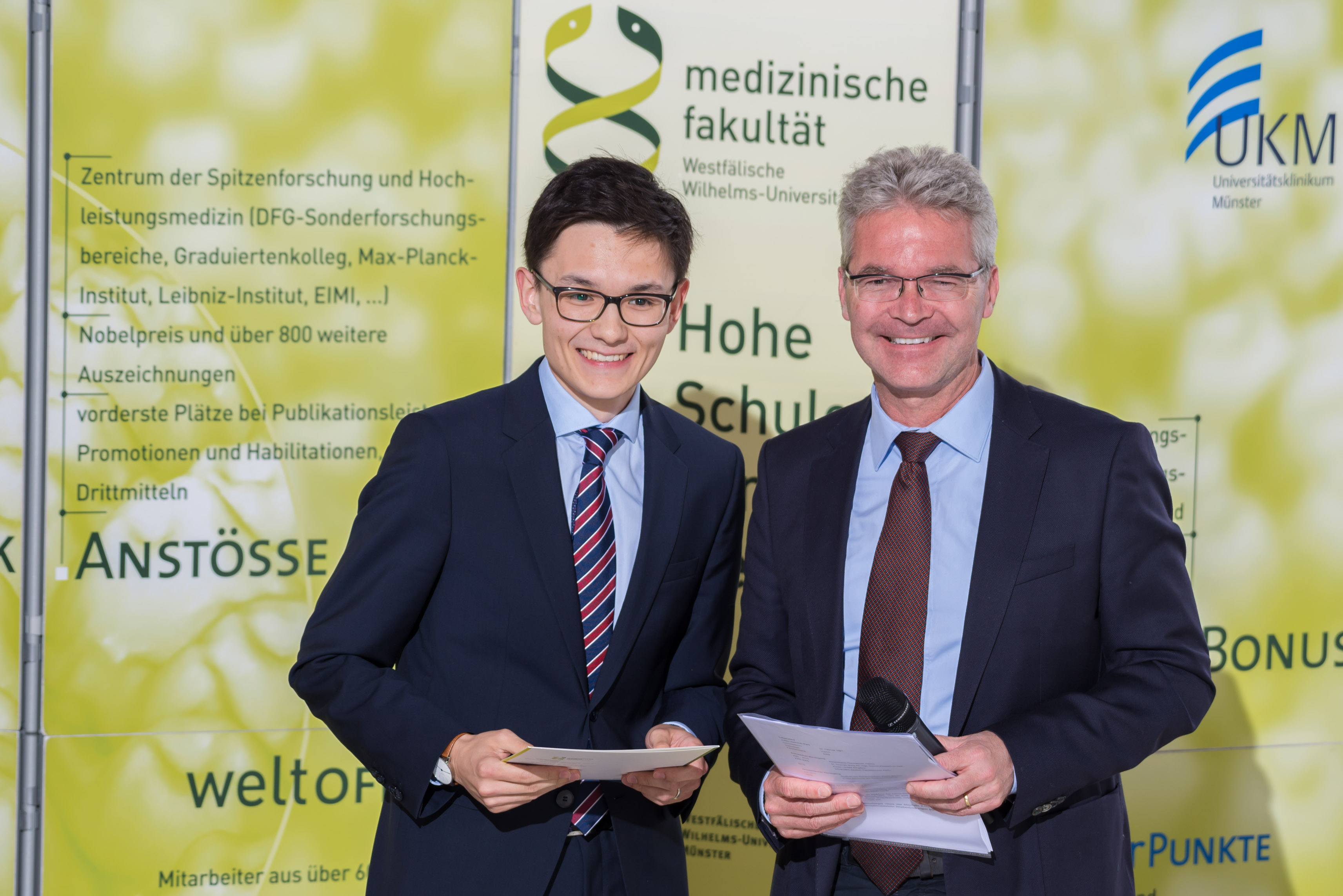 Park und Hogrebe, Doktoranden bei Professor Dr. Thorsten Marquardt, Medizinprofessor der Universität Münster und Mitarbeiter der Uniklinik für Kinder- und Jugendmedizin, identifizierten bei einem kranken Säugling eine bislang unbekannte Stoffwechselstörung. Doch nicht nur das: Sie entwickelten auch gleich eine wirksame Therapie. Der Säugling litt wegen eines Mangels des essentiellen Elements Mangan unter einem asymmetrischen Kopfwachstum, schwersten Krampfanfällen, der Unfähigkeit zu sehen und zu hören sowie extremen Unruhezuständen. Die beiden Doktoranden fanden die Ursache in einem defekten Gen. Ihr Therapieansatz: Die Funktion eines durch den Manganmangel gestörten Enzyms, der Galaktosyltransferase, durch Zuführung von Mangan und des Zuckers Galaktose zu beheben.