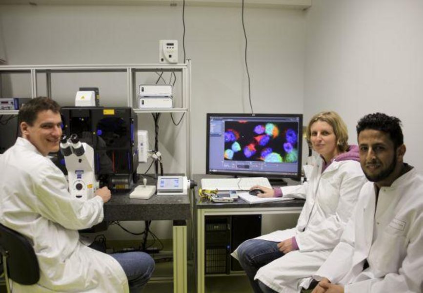 Münster (mfm/tw) - Reisen zum Mittelpunkt der Zelle: Ein neues Mikroskop am Zentrum für Pathologie, Anatomie und Neuropathologie (PAN-Zentrum) der Medizinischen Fakultät der Universität Münster ermöglicht die Untersuchung lebender Zellen in bis vor kurzem unmöglicher Auflösung. Mit einem herkömmlichen Lichtmikroskop hat das rund eine Million Euro teure Gerät nur wenig gemein: Das neue Mikroskop ermöglicht Auflösungen weit jenseits des nach dem deutschen Physiker Ernst Abbe (1840–1905) benannten Abbe-Limits von 500 Nanometern.