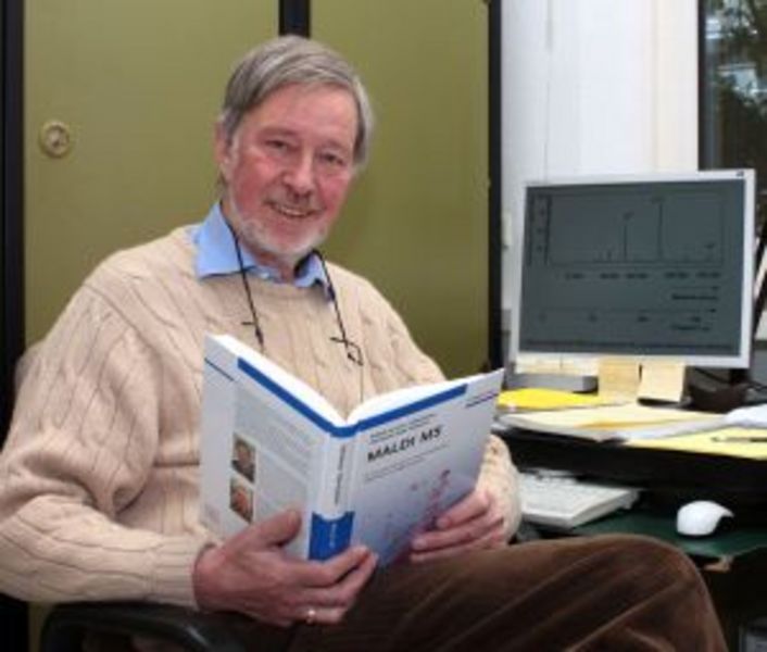 „In der zweiten Hälfte des 20. Jahrhunderts ist mehr und mehr klar geworden, dass alle biologischen Systeme im Wesentlichen als biochemische Maschinen funktionieren“, sagt Hillenkamp, der 15 Jahre lang an der Medizinischen Fakultät der Universität Münster (WWU) arbeitete und als 73-jähriger noch heute, nach seiner Emeritierung, wissenschaftlich so aktiv ist wie zuvor. „Sehr große Moleküle spielen dabei eine Schlüsselrolle“, so der Forscher: Rund 1.000 unterschiedliche Proteine (Eiweiße) gibt es in jeder menschlichen Zelle, der Cocktail wandelt sich ständig. Was in den 1970er Jahren noch fehlte, war ein Messverfahren für diese großen Moleküle. Diese Lücke schloss eine Forschergruppe aus dem Institut für Medizinische Physik und Biophysik der WWU. 1988 veröffentlichte das Team um Hillenkamp und Michael Karas ein Verfahren, das seitdem weltweit im Einsatz ist: die „Matrix-unterstützte Laser-Desorptions-/Ionisations-Massenspektrometrie“, kurz: MALDI-MS. Der Japaner Koichi Tanaka entwickelte eine ähnliche Methode, die aber wesentlich unempfindlicher ist und deshalb nicht verwendet wird.