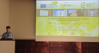 Einen weiteren Schwerpunkt setzte Yannik Warnecke mit dem Vortrag „Transforming Oncology Data for Artificial Intelligence: Leveraging oBDS for Scalable Medical Research“. Darin zeigte er, wie KI zur besseren Nutzung und Analyse von Onkologiedaten eingesetzt werden kann. Grundlage bildet der onkologische Basisdatensatz (oBDS), der bundesweit einheitliche Standard zur Dokumentation von Krebserkrankungen.