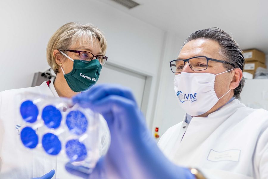 Stephan Ludwig erläuterte der Ministerin neue Therapieansätze, die nicht das Virus selbst angreifen, sondern Faktoren in der Zelle blockieren, die das Virus benötigt, um sich zu vermehren. „Der große Vorteil unseres Ansatzes ist sein doppelter Nutzen: Es wird nicht nur die Virus-Vermehrung gehemmt, sondern auch eine überschießende Immunantwort, die ein Problem bei schweren Verläufen von Covid-19 und Influenza darstellt“, unterstrich der Virologe. Ein entsprechender Wirkstoff mit der Bezeichnung "ATR-002" zeige vielversprechende Ansätze. Die Firma Atriva Therapeutics GmbH habe den Wirkstoff für die klinische Anwendung weiterentwickelt - bislang habe er sich als sicher und gut verträglich gezeigt. Im Januar beginne eine weitere Studie mit Unterstützung von Covid-19-Patienten.