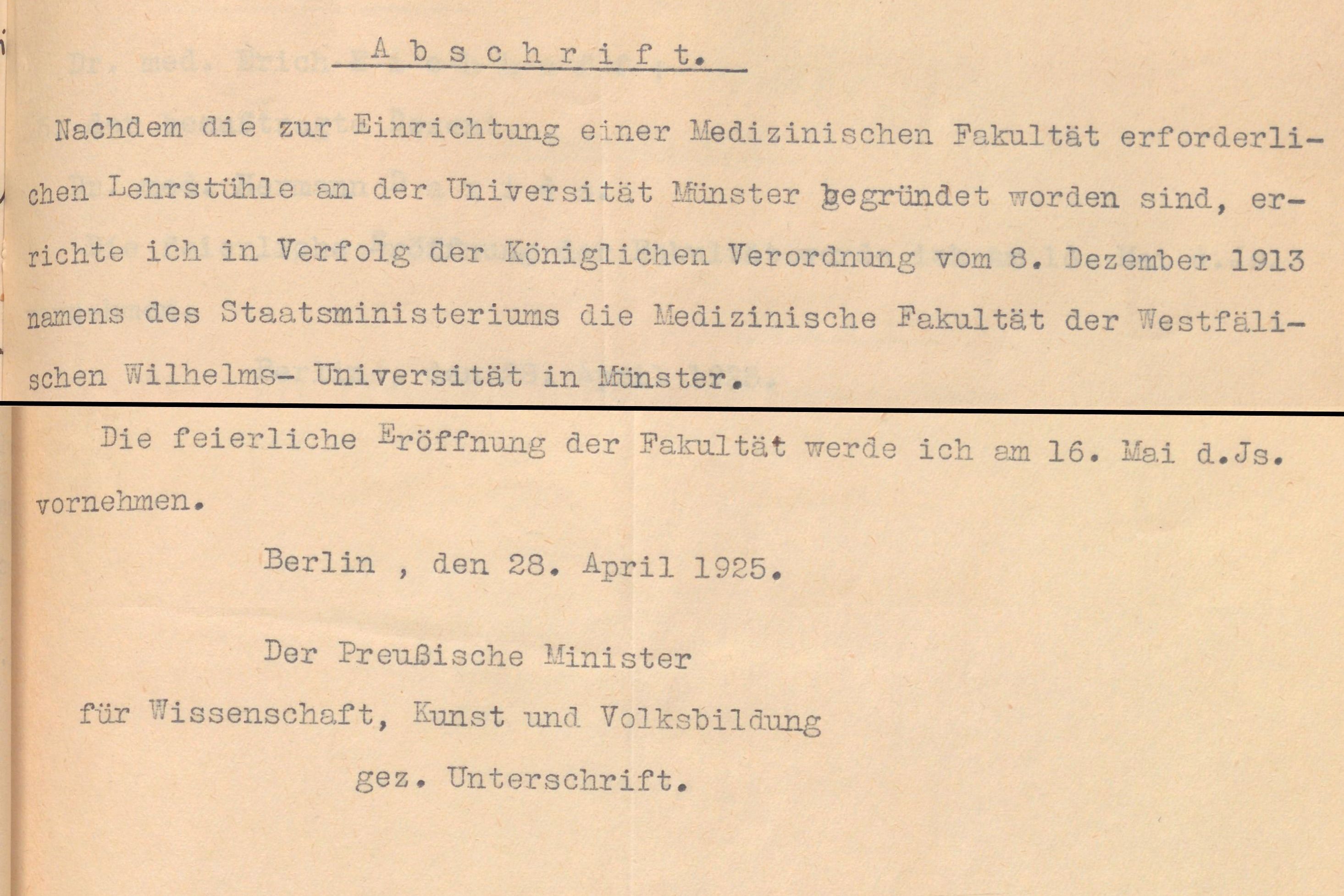 Ein Foto aus der Medizinischen Fakultät bezeugt, dass auch an der Universität Münster ausgelassen gefeiert wurde. Die Karnevalsfeiern der Medizinischen Fakultät in der Nachkriegszeit waren legendär. Zum Feiern und als Übernachtungsmöglichkeit wurde das Hotel Schnellmann angemietet. Das Hotelgebäude an der Hüfferstraße/Ecke Kardinal-von-Galen-Ring existiert noch, wird aber seit Jahrzehnten anderweitig genutzt.