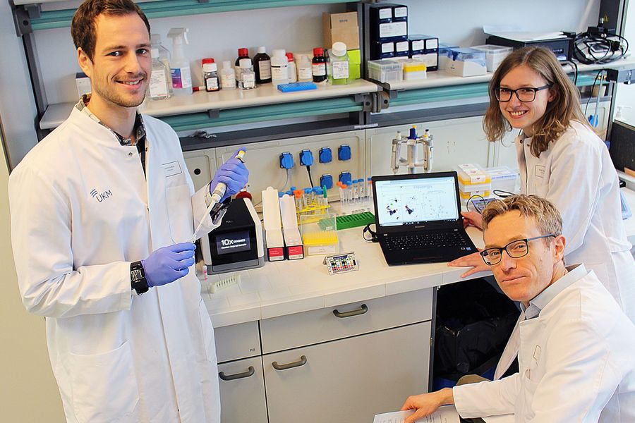 Möglich wurde der Fortschritt, mit dem das Team weltweit zu den Pionieren zählt, durch hochauflösende Analysen mittels Einzelzell-Transkriptomik. Diese stellt die Gesamtheit aller in einer Zelle vorliegenden Moleküle dar, die aus der Erbinformation in Bauanleitungen übersetzt werden. So verglichen die Wissenschaftler in einem Projekt des von der Deutschen Forschungsgemeinschaft geförderten Sonderforschungsbereichs „Multiple Sklerose“ das Profil gesunder Menschen mit dem von Multiple-Sklerose-Patienten. Die kurz auch MS genannte Autoimmunerkrankung betrifft das Nervensystem, sie führt zu wiederkehrenden schubhaften Entzündungen von Gehirn und Rückenmark.
