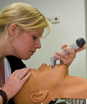 Auch bei den praktischen Kursen am Vormittag wartete so manche Herausforderung. Beispielsweise wurden die Aspiranten durch spezielle Anzüge „künstlich“ gealtert, so dass sie die Lebensumstände älterer Patienten nachempfinden konnten: eingeschränkte Sicht, krummer Rücken und steife Glieder. Darüber hinaus erhielten sie eine erste Einweisung in die körperliche Untersuchung, diagnostizierten ihren ersten - natürlich virtuellen - Patienten und sammelten Erfahrungen in der Ultraschall-Diagnostik. Wie im echten Studentenleben wartete am Ende der Orientierungswoche eine ernsthafte Klausur.