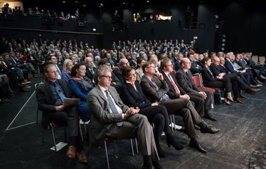 Münster (ukm/mfm-mz) - Ein gut aufgestelltes Haus, das jedoch ohne weitere Investitionen infrastrukturell an seine Grenzen kommt – so lautete der Appell von Prof. Robert Nitsch beim gemeinsamen Neujahrsempfang des Universitätsklinikums Münster (UKM) und der Medizinischen Fakultät der Westfälischen Wilhelms-Universität Münster (WWU). „Für uns wird das Jahr 2018 ein entscheidendes Jahr werden“, sagte der Vorstandsvorsitzende und Ärztliche Direktor. „Wir sind unserem Auftrag nachgekommen, nach den Koalitionsverhandlungen eine Gesamtplanung der notwendigen Modernisierungen und Erweiterungen vorzulegen. Jetzt müssen Taten folgen, um das UKM zukunftsfähig zu machen.“Der sogenannte „Pakt für das UKM“ beinhaltet den Bau eines Operativen Zentrums, die Innensanierung der Türme und die Bereitstellung fehlender Büroräume. „Wir – und damit meine ich unsere Mitarbeiterinnen und Mitarbeiter – haben in den vergangenen Jahren beste medizinische Versorgung für unsere Patientinnen und Patienten geboten. Die Universitätsmedizin in Münster ist gefragt und auch wirtschaftlich sind wir im Kern gut aufgestellt“, so Nitsch in seiner Rede vor rund 350 Gästen im Theater Münster. Jedoch müsse man diesen Patienten auch etwas bieten, gerade was die Qualität der Unterbringung angeht, die maßgeblich zur Zufriedenheit beiträgt. Die Innensanierung ist laut Nitsch längst überfällig: „Niemand würde verstehen, wenn es hier baulich nicht vorwärts geht.“Dr. Christoph Hoppenheit, Kaufmännischer Direktor und stellvertretender Vorstandsvorsitzender, untermauerte die guten Leistungen am UKM. „Sowohl im ambulanten wie stationären Bereich haben wir das hohe Niveau der Anzahl behandelter Patientinnen und Patienten des Vorjahres halten können. Die Nachfrage der medizinischen Leistungen des UKM ist ungebrochen.“ Mehr als 10.500 Mitarbeiter arbeiten mittlerweile für das Klinikum und seine Tochterfirmen. Doch davon sind Hunderte inzwischen in Containern auf dem Campus oder in externen Büros untergebracht. „Wir sind in den vergangenen Jahren als der größte Arbeitgeber des Münsterlandes extrem gewachsen, allerdings ist seitdem kein einziges Büro für die weit mehr als 2.000 zusätzlichen Mitarbeiter entstanden“, nennt Hoppenheit ein Beispiel.Mit großem Interesse wird auf dem Campus auch die Entscheidung zum Excellenzcluster „Cells in Motion“ (CiM) erwartet. „Wir sehen dem Finale im Herbst sehr positiv entgegen“, sagte Dekan Prof. Mathias Herrmann, der die Begutachtung profilgebend für die weitere Forschung an der Medizinischen Fakultät sieht. Ebenfalls in der zweiten Jahreshälfte erfolgt eine Begutachtung des Bereichs Forschung und Lehre durch den Wissenschaftsrat NRW. „Hier sehen wir uns sehr gut aufgestellt. Wir freuen uns auf diese Chance zur Darstellung des Standorts und unserer Konzepte“, so Herrmann, dessen Haus vor wenigen Tagen noch den mit 30.000 Euro dotierten Lehrpreis der WWU erhalten hat. Ausgezeichnet wurde das "Lernzentrum für ein individualisiertes medizinisches Tätigkeits-Training und Entwicklung", kurz Limette, eine kreisförmige Anordnung von zwölf Behandlungsräumen um eine zentrale Beobachtungseinheit, die den Dozenten ermöglicht, gleichzeitig 24 Studierende live dabei zu beobachten, wie sie Patientenfälle aus einem bestimmten medizinischen Fachgebiet behandeln.