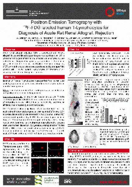 Auf der Jahrestagung der Deutschen Gesellschaft für Nephrologie in Berlin wurde die Arbeit mit dem Titel "Positron Emission Tomography with 18F-FDG labeled human T-Lymphocytes for diagnosis of acute rat renal allograft rejection" der Autoren A. Grabner, D. Kentrup, H. Pavenstädt, O. Schober, E. Schlatter, M. Schäfers, U. Schnöckel und S. Reuter mit einem Posterpreis ausgezeichnet.
