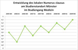 Auch das neue Verfahren in Münster sei daher kein Abrücken vom bisherigen – sondern eine „innovative Ergänzung“. „Wir schaffen damit mehr Fairness und spreizen das Spektrum der Bewerber auf“, so der Dekan der Medizinischen Fakultät, Prof. Dr. Wilhelm Schmitz. Bislang hatte seine Fakultät neben dem Abiturschnitt nur die Ortswahl der Bewerber – Münster musste an erster Stelle der präferierten Unis stehen - als Entscheidungsgrundlage genommen. „Der hier sehr hohe Praxisbezug und Innovationen wie das Studienhospital haben den Standort aber immer beliebter werden lassen“, sagt Schmitz. So bewarben sich im letzten Wintersemester 1.564 Interessenten um die 96 Studienplätze in der Hochschulquote. Die Folge: Der Notenschnitt, den Bewerber mitbringen mussten, um über diesen Zugang sicher einen Platz zu bekommen, stieg von Jahr zu Jahr; zuletzt lag er im Winter bei 1,0.