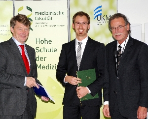 Münster (mfm/towe) - Schweres Schicksal in jungen Jahren: Das Ewing-Sarkom, zweithäufigster Knochentumor bei Kindern, Jugendlichen und jungen Erwachsenen, ist wegen starker Tendenz zur Bildung von Tochtergeschwülsten besonders bedrohlich. „Nur die frühe Erkennung der Krebsausbreitung ermöglicht eine gezielte Therapie und erhöht damit deutlich die Chance auf endgültige Heilung“, weiß Dr. Dr. Ulrich Gerth: Der münstersche Mediziner und Chemiker beschäftigte sich in seiner zweiten Doktorarbeit mit dem Vergleich von Diagnoseverfahren zur Entdeckung von Metastasen. Dafür zeichnete ihn die Medizinische Fakultät der Universität Münster nun mit dem Förderpreis der Maria-Möller-Stiftung aus, der herausragende onkologische (krebsbezogene) Arbeiten würdigen soll.
