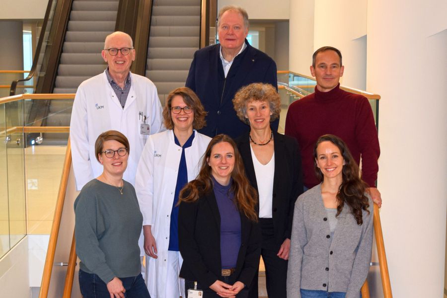 Das Forschungsteam des Konsortialprojekts IntersectionHF unter der Leitung der Universität Münster (v. l.): Dr. Lena Makowski, Prof. Jürgen Sindermann, Dr. Anastasia Hobbach, Prof. Andreas Faldum, Dr. Jeanette Köppe, Dr. Christiane Engelbertz, Prof. Holger Reinecke und Karen Fischhuber (Foto: privat)