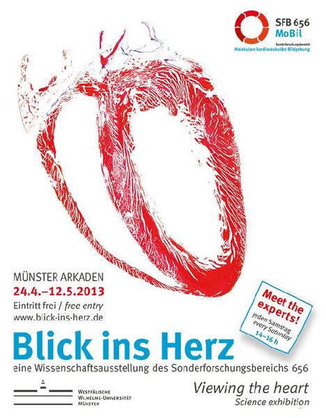Wie können Forscher mit medizinischer Bildgebung ins Herz blicken? Und wie können neue Bildgebungstechnologien dazu beitragen, einen Herzinfarkt zu vermeiden? Diese Fragen spielen in der modernen Forschung eine wichtige Rolle und betreffen eine breite Öffentlichkeit – denn über 300.000 Menschen erleiden in Deutschland jedes Jahr einen Herzinfarkt. Mediziner, Naturwissenschaftler und Mathematiker des Sonderforschungsbereichs (SFB) 656 der Universität und des Universitätsklinikums Münster präsentieren dazu vom 24. April bis 12. Mai in den "Münster Arkaden" ihre Ausstellung "Blick ins Herz".