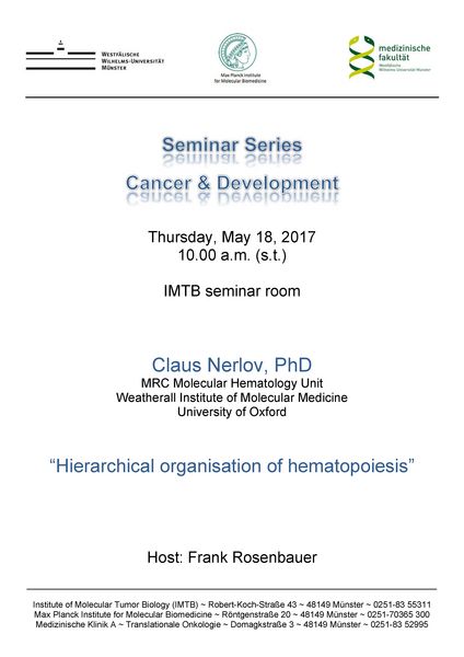 cancer & development seminar: "Hierarchical organisation of hematopoiesis"
