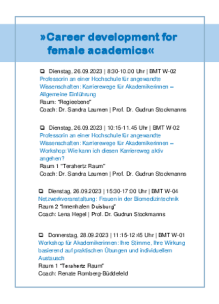 BMT W-02 Professorin an einer Hochschule für angewandte Wissenschaften: Karrierewege für Akademikerinnen – Workshop: Wie kann ich diesen Karriereweg aktiv angehen?