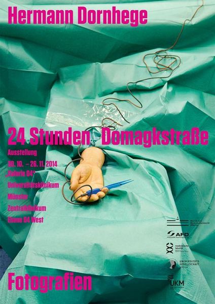 Für das Domagk-Jahr 2014 gibt er in einer Langzeitbeobachtung Einblicke in die Arbeit und den Alltag der verschiedenen medizinischen Einrichtungen entlang der Domagkstraße. So unspektakulär, wie diese Straße auf den ersten Blick erscheint, so interessant und überraschend sind die verschiedenen Arbeitsfelder, die normalerweise hinter den Backsteinfassaden vor den Blicken der Passanten verborgen sind. Dichtgedrängt und vielfältig, auf wenigen hundert Metern: Forschung, Lehre, Diagnostik, Behandlung.