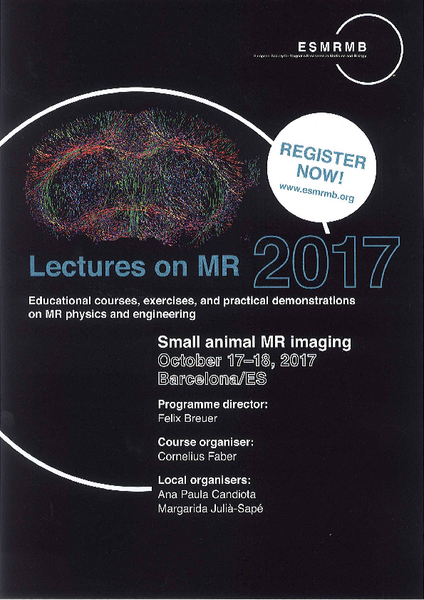 This years "Lectures on MR 2017 - Small animal MR imaging" as part of the ESMRMB 2017 Congress will be held from October 17-18, 2017, in Barcelona.