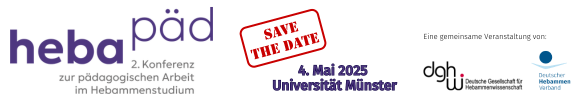 An der Universität Münster findet die zweite Konferenz HEBA-PÄD 2025 zur pädagogischen Arbeit im Hebammenstudium statt. Ausgerichtet wird sie von der Deutschen Gesellschaft für Hebammenwissenschaft (DGHWi) und dem Deutschen Hebammenverband (DHV) und richtet sich an diejenigen, die pädagogisch im Studium von Hebammen in Theorie und/oder Praxis tätig sind. Das Ziel ist die Förderung des Austauschs, der Vernetzung, Interaktion, Zusammenarbeit und der Forschung.
