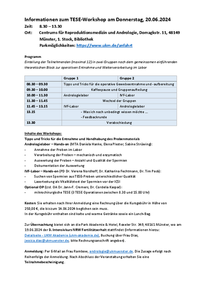 Ort: Centrums für Reproduktionsmedizin und Andrologie, Domagkstr. 11, 48149
