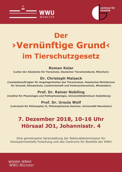 Am Freitag, 7. Dezember, diskutieren Expertinnen und Experten, was mit dem "vernünftigen Grund" gemeint ist, den der Gesetzgeber bei Tierversuchen einfordert.