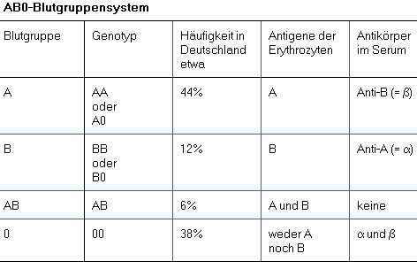 - Blutgruppe mit den Ausprägungen A,B,AB und 0